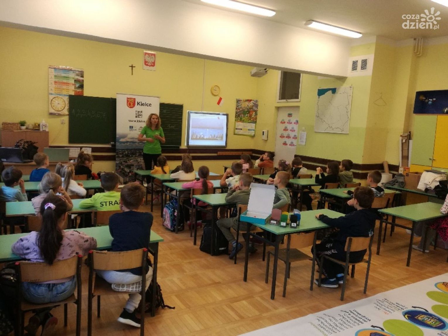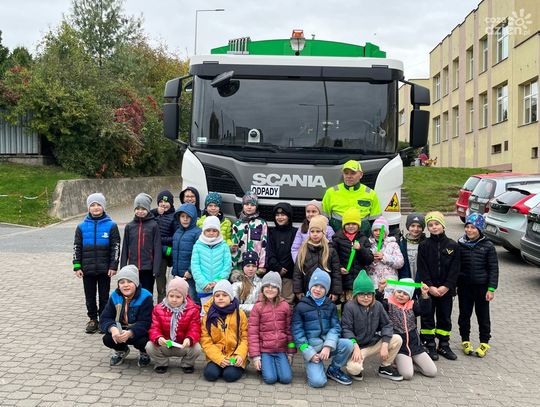 Przedstawiciele firmy ENERIS Surowce S.A. opowiedzieli dzieciom o zasadach bezpiecznego przebywania koło śmieciarki o manewrach jakie śmieciarki wykonują na osiedlach i o sygnałach ostrzegawczych (dźwiękowych i świetlnych), na które powinno się zwracać uwagę.