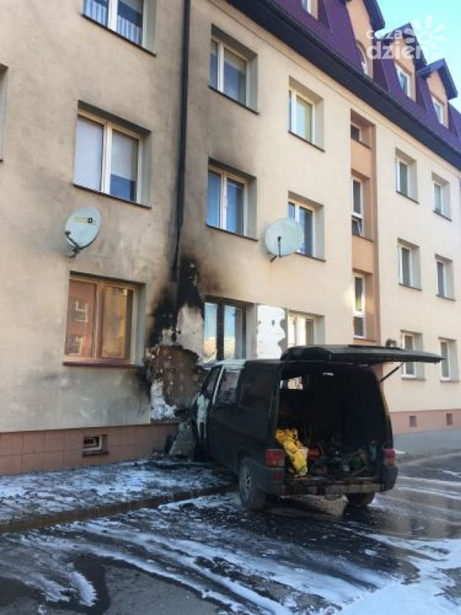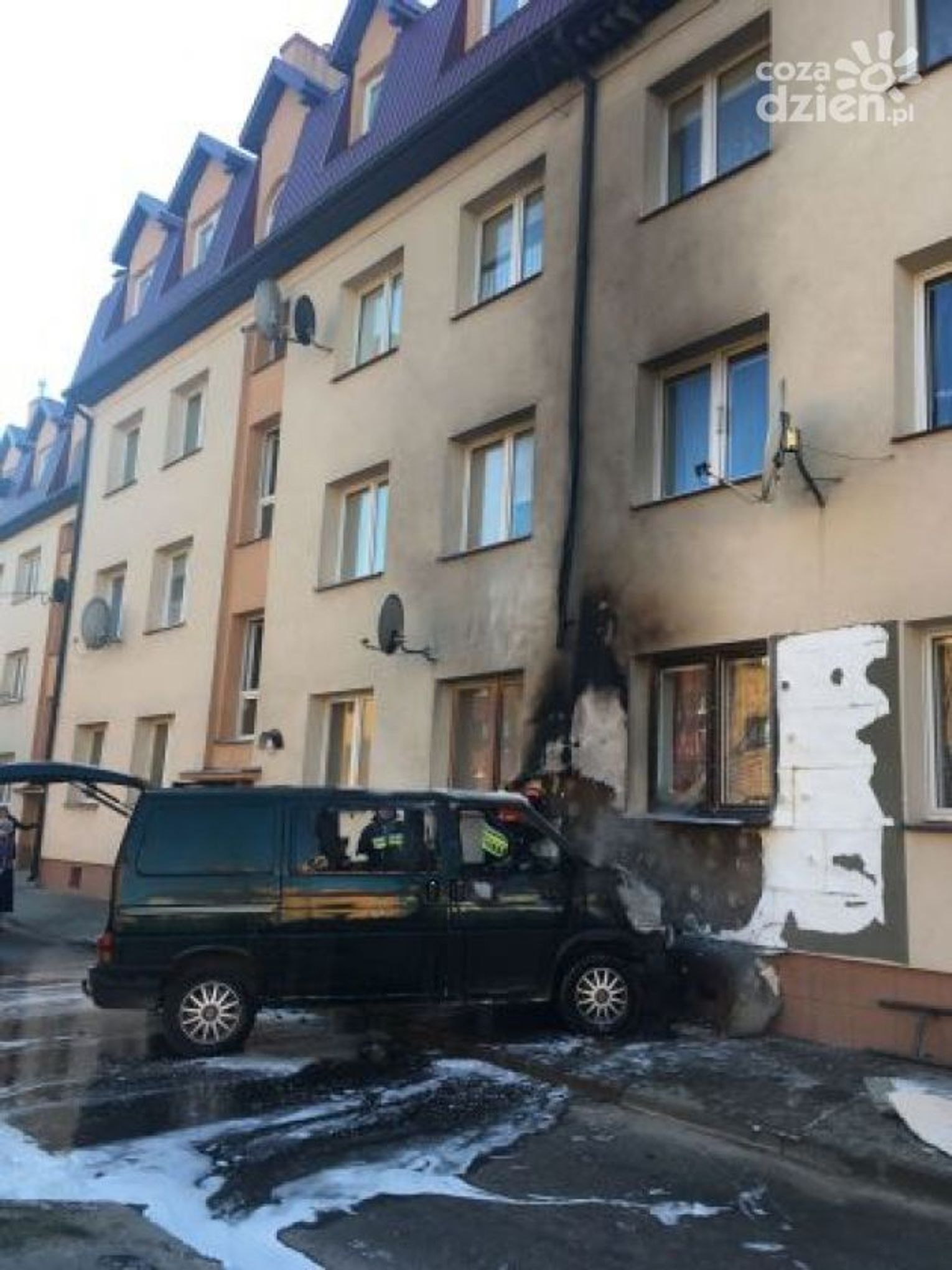 Do zdarzenia natychmiast zadysponowano cztery samochody ratowniczo-gaśnicze - w sumie 11 strażaków. Po przybyciu zastępów na teren akcji stwierdzono, że pożarem objęty jest już cały samochód osobowy marki VW Transporter. Działania strażaków polegały na zabezpieczeniu miejsca zdarzenia oraz podaniu piany na palący się pojazd i elewację budynku.