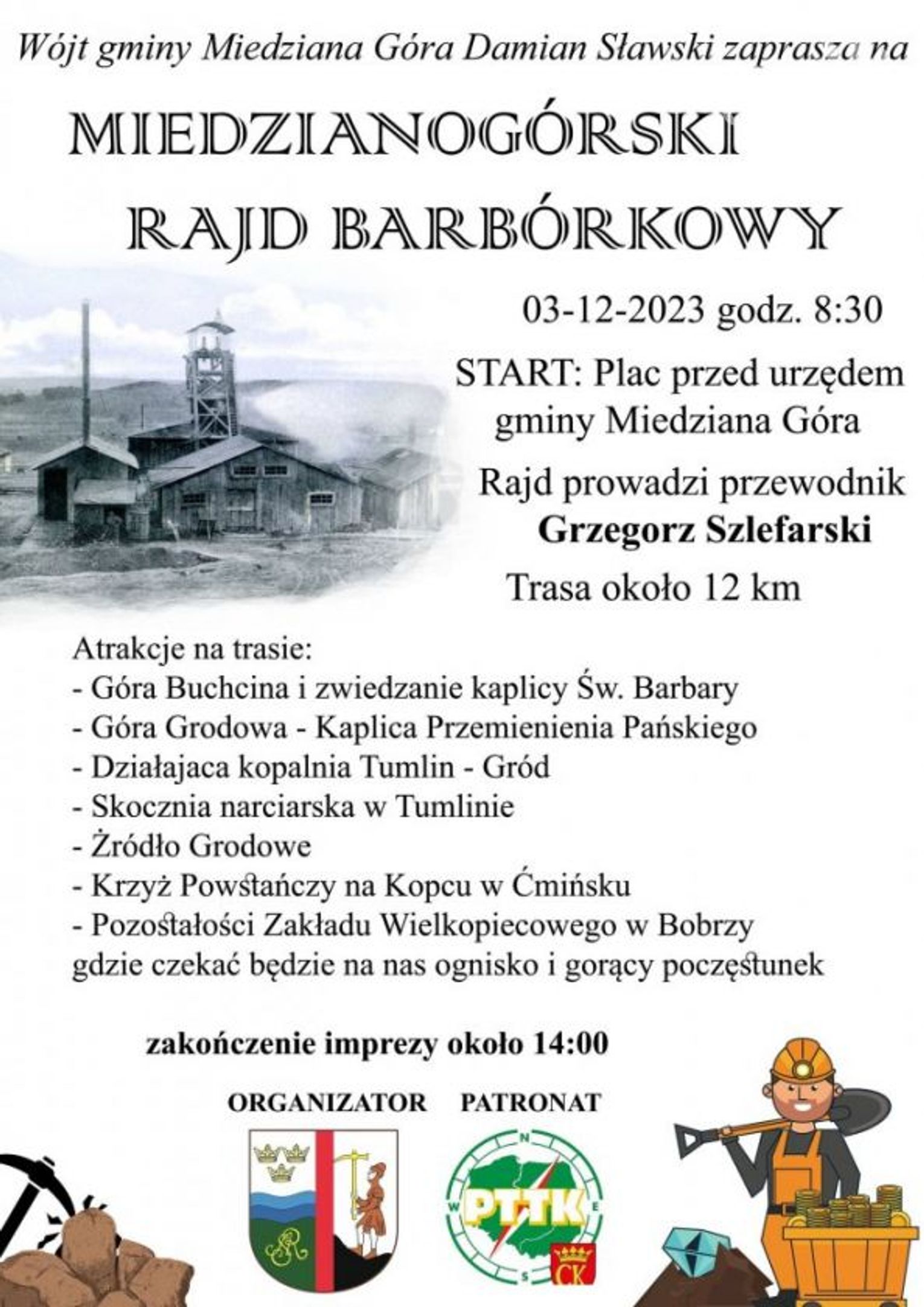 Przez Miedzianą Górę, masywy Góry Kamień i Wykieńskiej, Tumlin-Podgród z wejściem do działającego kamieniołomu Tumlin-Gród, lasem Sosnówki do Źródła Grodowego, a stąd pod Krzyż Powstańczy w Ćmińsku i docieramy do mety przy murze oporowym w Bobrzy, gdzie czekać będzie ognisko i gorący poczęstunek.