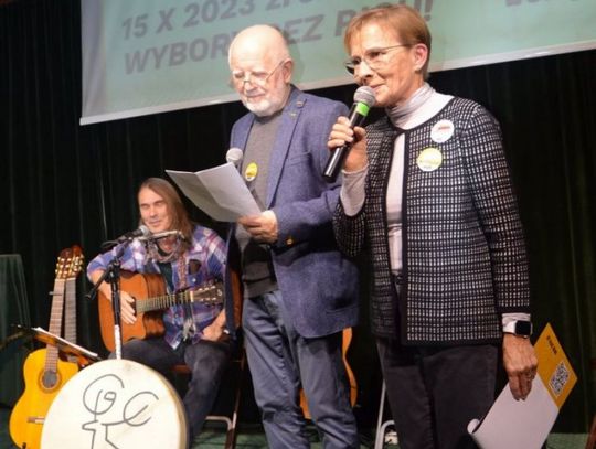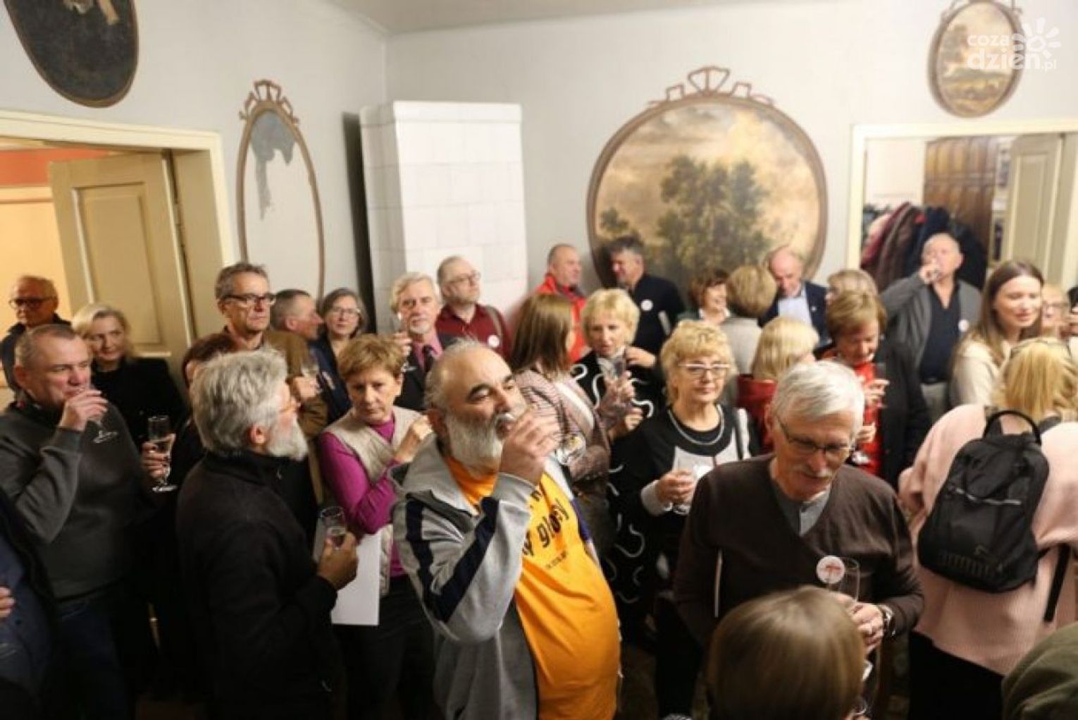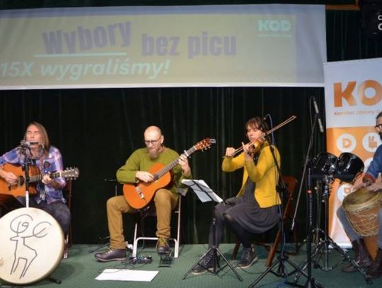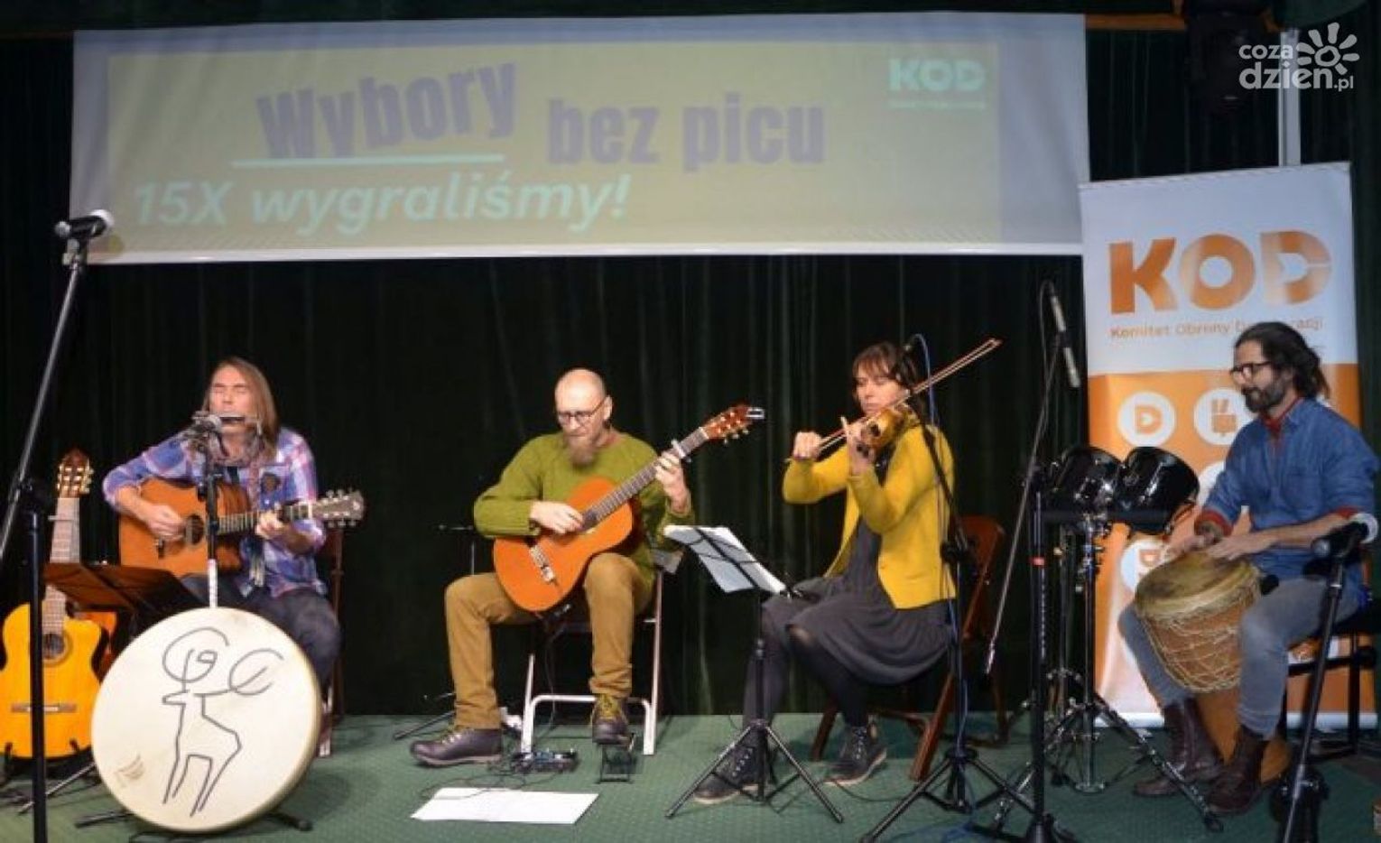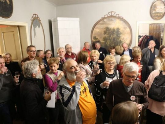 Po części oficjalnej wszyscy wznieśli toast szampanem i skosztowali ogromnego tortu. A na scenie wystąpił z repertuarem poezji śpiewanej zespół Gędzi Chór, którego lider jest członkiem KOD i brał udział w obserwacji wyborów.