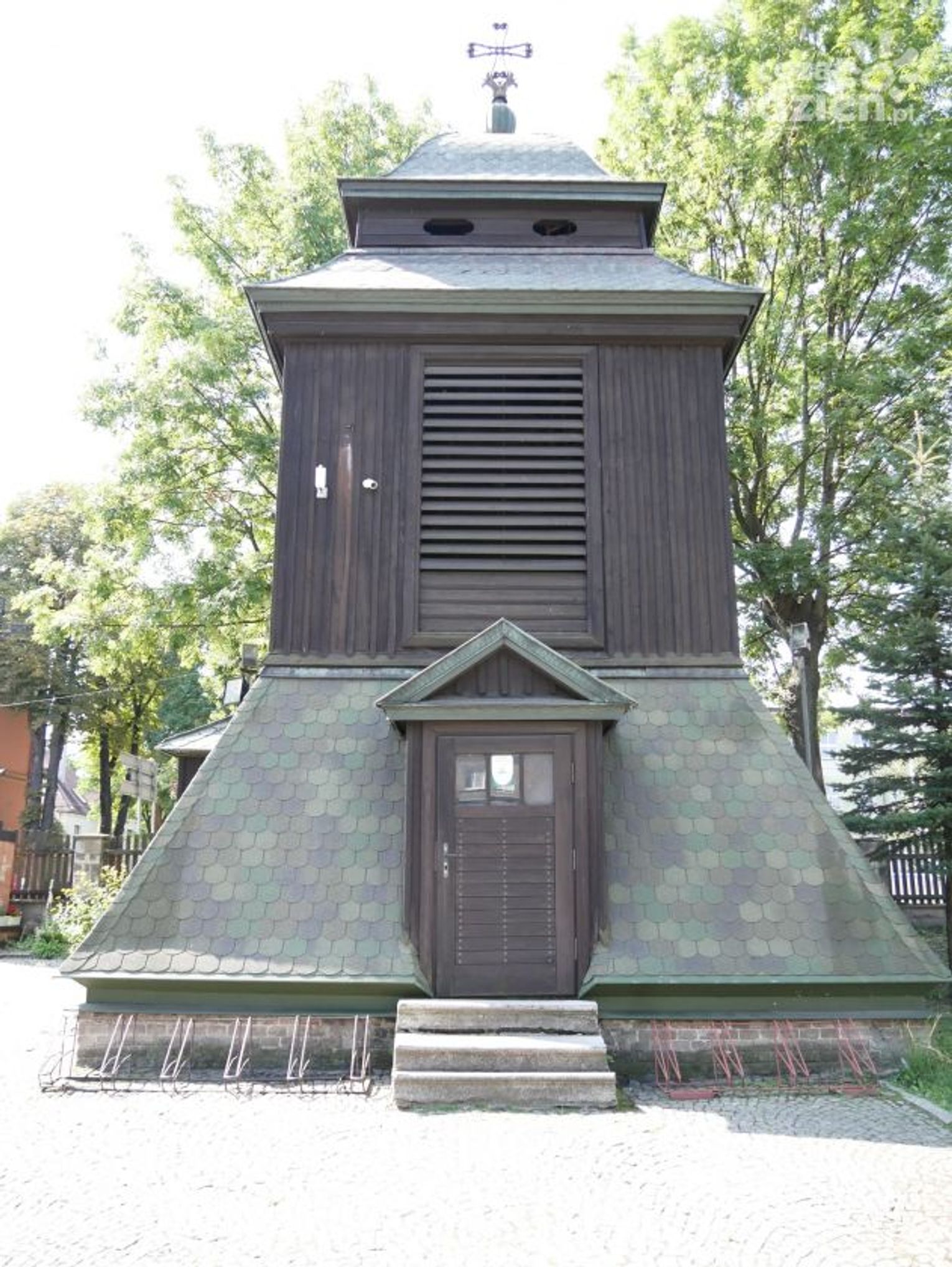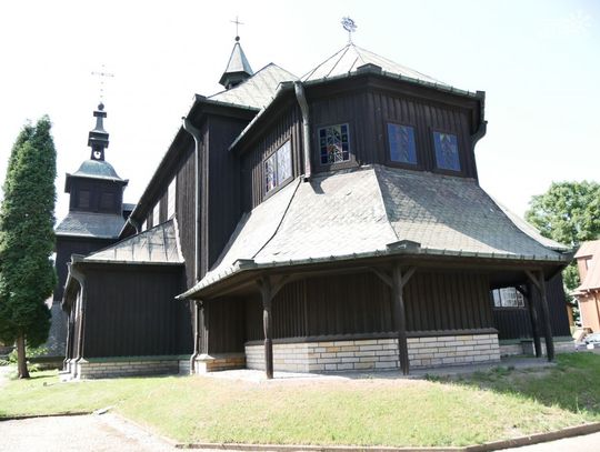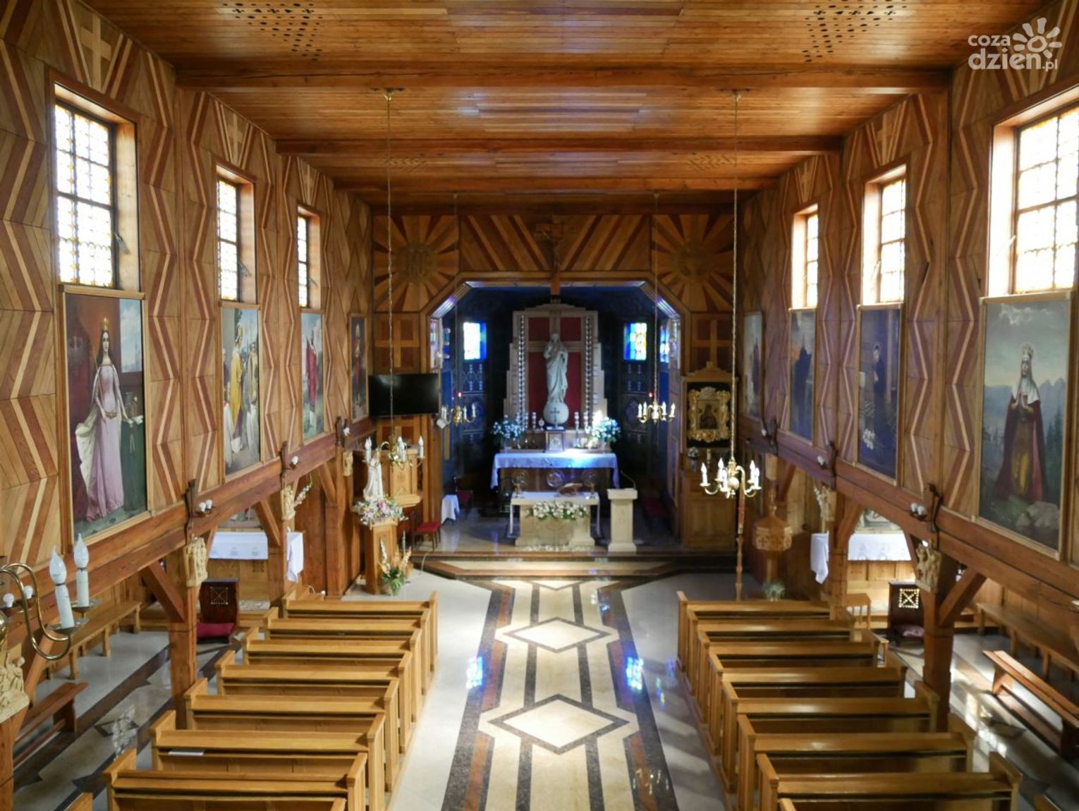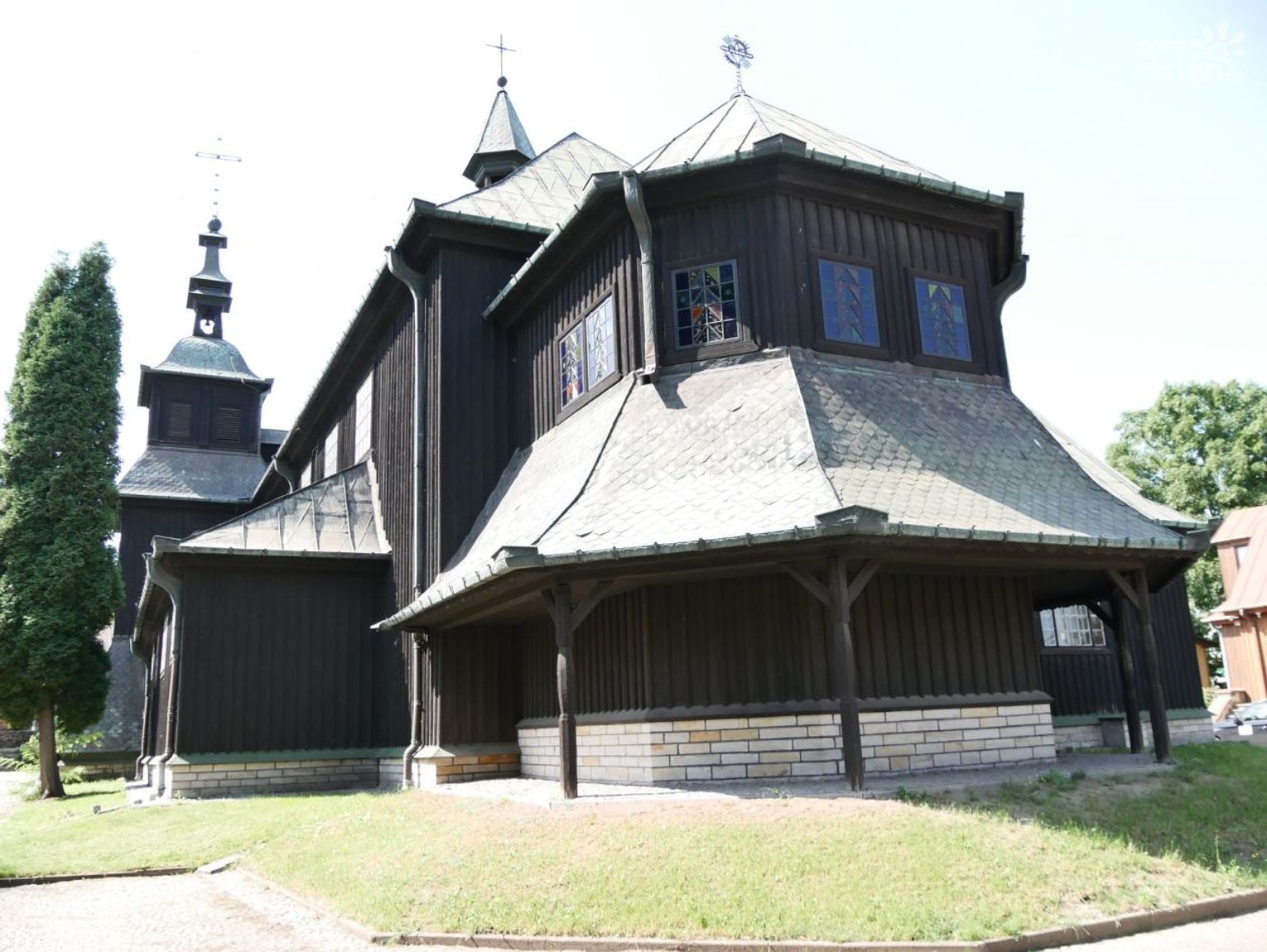 Drewniany kościół z 1932 r. oraz dzwonnica, z 1939 r. zostały zaprojektowane przez Tadeusza Rekwirowicza osobę dla Ostrowca Świętokrzyskiego znaczącą. Był to architekt, historyk, fotograf, ale również ostrowiecki społecznik.