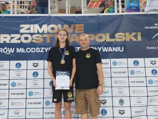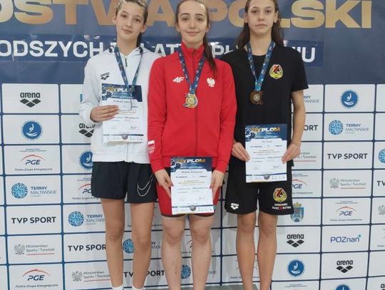 Młoda pływaczka z Zespołu Szkół Ogólnokształcących Mistrzostwa Sportowego w Ostrowcu Świętokrzyskim startowała na dystansie 100 metrów grzbietem.