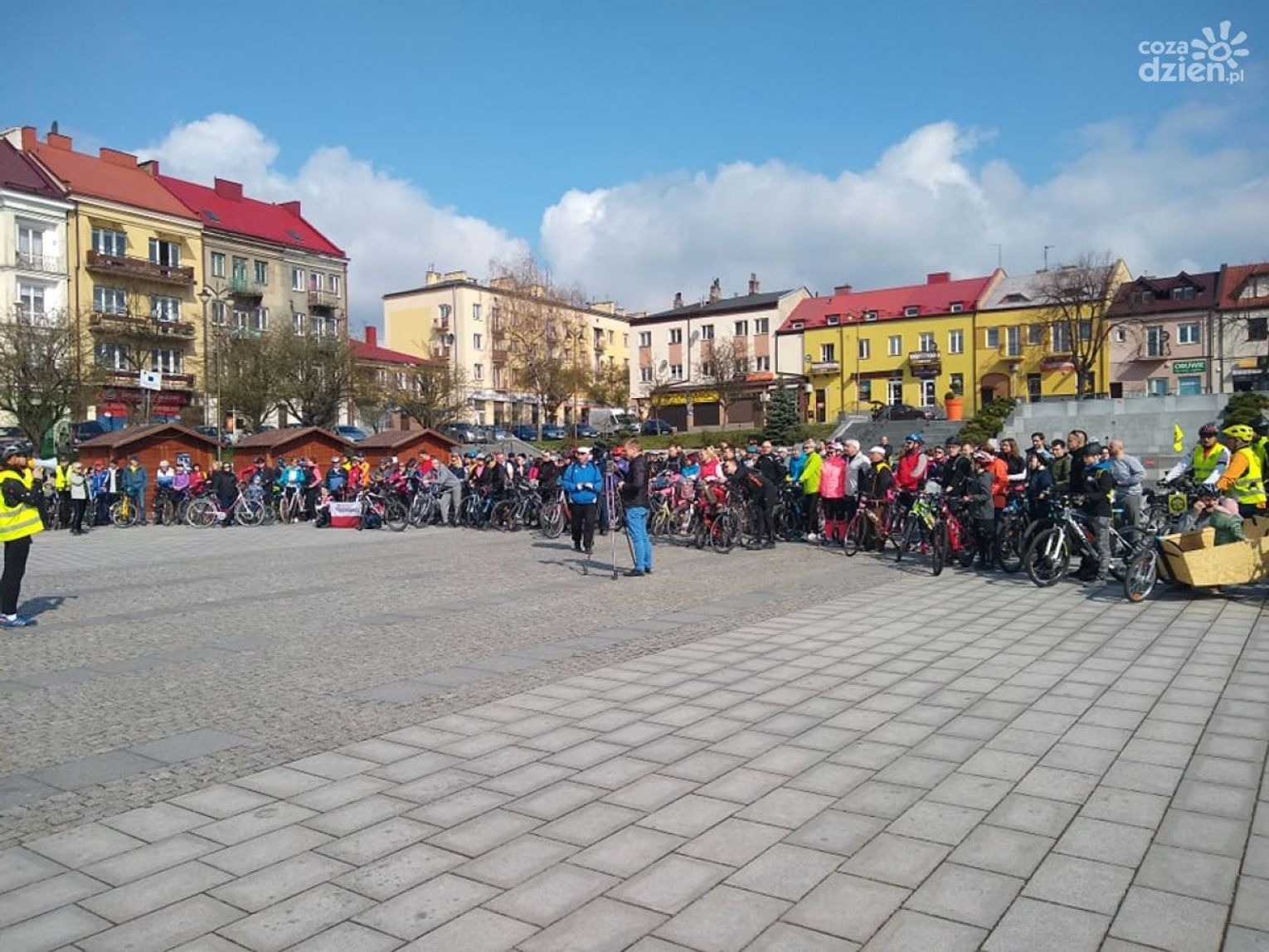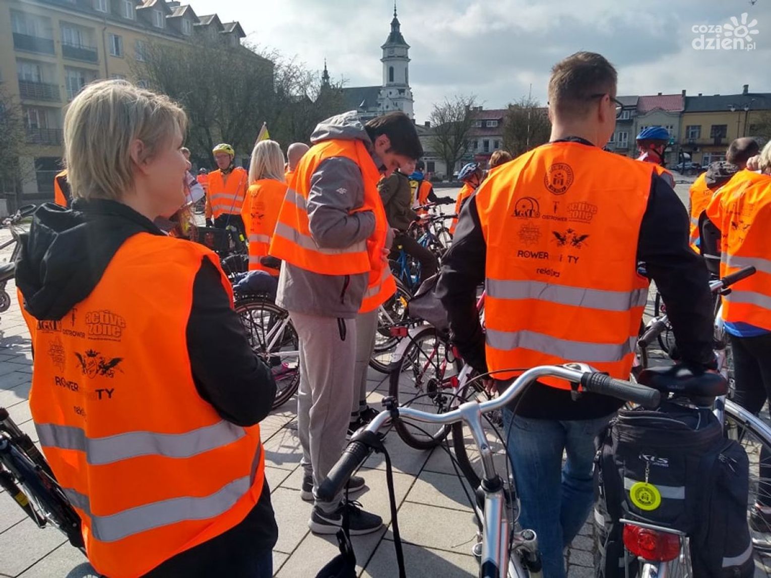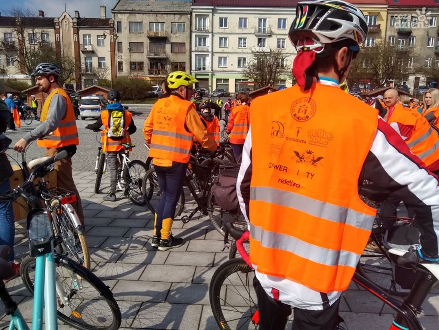Rowerzyści spotkali się w ostrowieckim Rynku punktualnie o godz. 10. Tam odebrali odblaskowe kamizelki, przygotowane w ramach akcji ŚGM "Z rowerami na Ty", nad którą honorowy patronat sprawuje prezydent Jarosław Górczyński.
