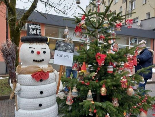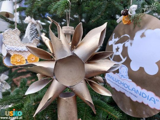 Aniołki, pierniczki, bombki, mikołaje, smoczki, wózeczki, szyszki, orzeszki i wiele innych własnoręcznie wykonanych ozdób zawisło na zielonych miejskich drzewkach.
