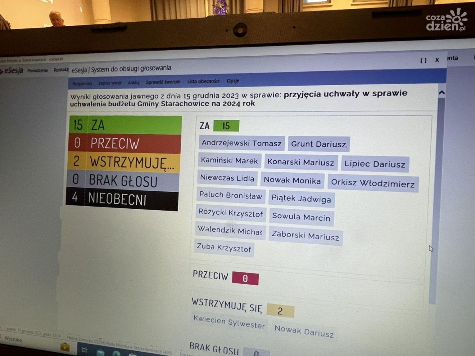 Uchwała została przyjęta 15 głosami „za”, przy dwóch głosach wstrzymujących się.