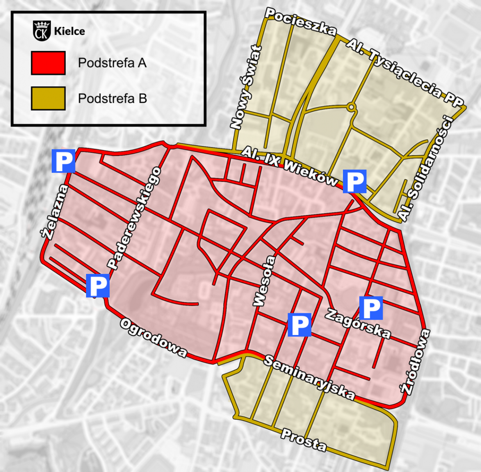 Istniejąca dotychczas strefa w obszarze ścisłego centrum będzie Podstrefą A. Podstrefa B w części północnej zostanie ograniczona ulicami Nowy Świat, Pocieszka, al. Tysiąclecia PP i al. Solidarności, natomiast w części południowej Wesołą, Wojska Polskiego, Prostą i Tarnowską.