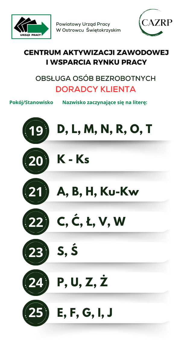 Nastąpiła też zmiana dotycząca obsługi interesantów. Nowe miejsca obsługi osób bezrobotnych jak i pracodawców przedstawione zostały na grafikach poniżej.