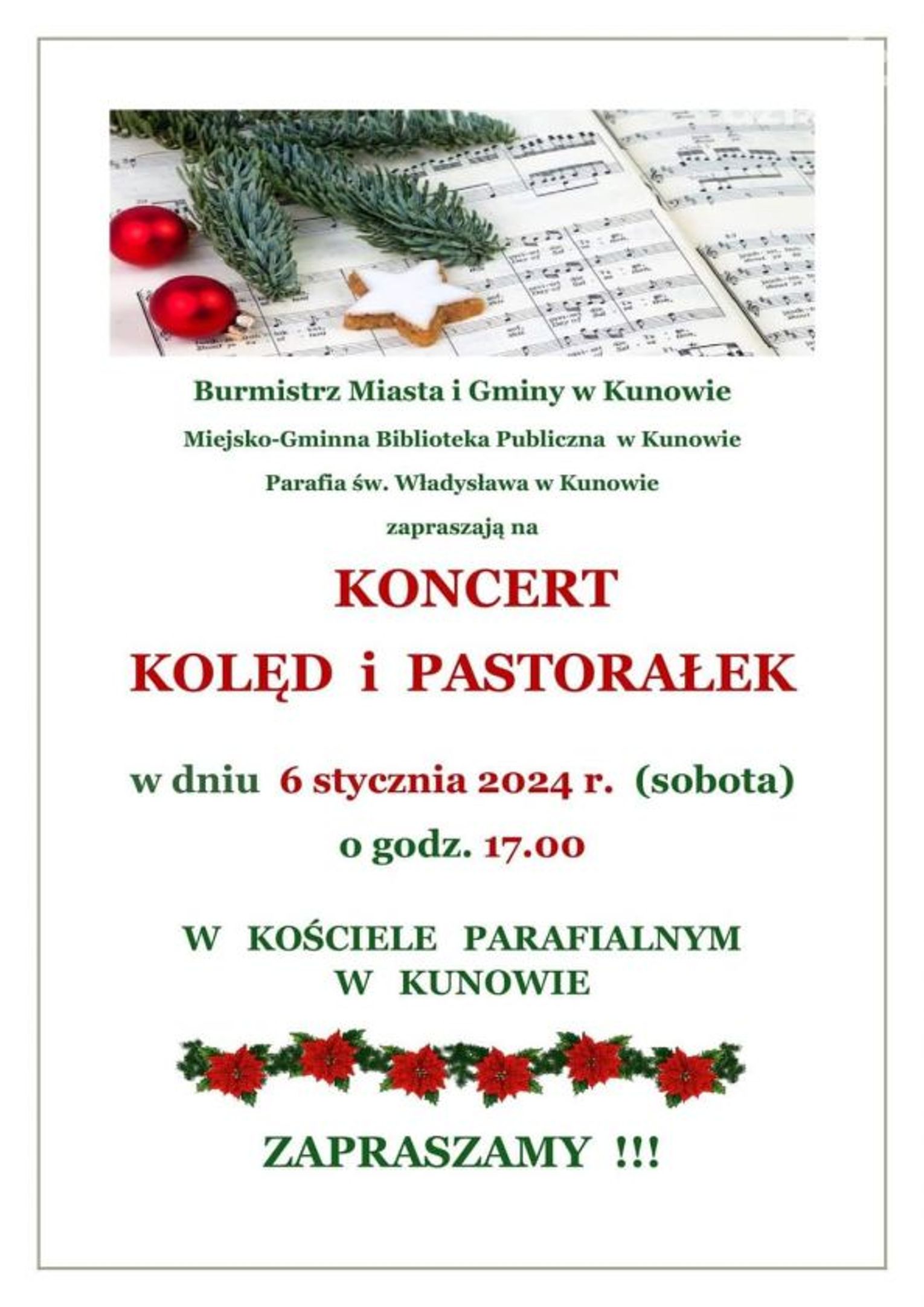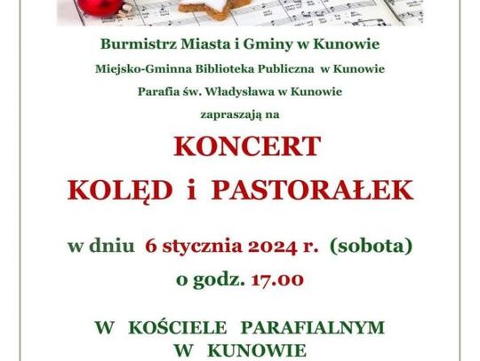 Zaplanowano go na najbliższą sobotę, czyli 6 stycznia, w Święto 3 Króli. Koncert rozpocznie się o godzinie 17 w kunowskim kościele parafialnym.