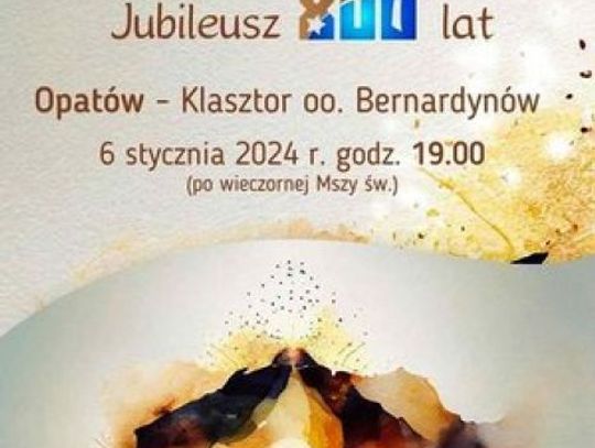 Tu w klasztorze oo. Bernardynów w Opatowie odbędzie się niezwykły koncert pt. "Greccio - Jubileusz 800 lat" . Koncert nawiązuje do historycznego wydarzenia w Greccio, gdzie Św. Franciszek z Asyżu w 1223 roku stworzył pierwszą szopkę, ukazującą narodziny Jezusa.