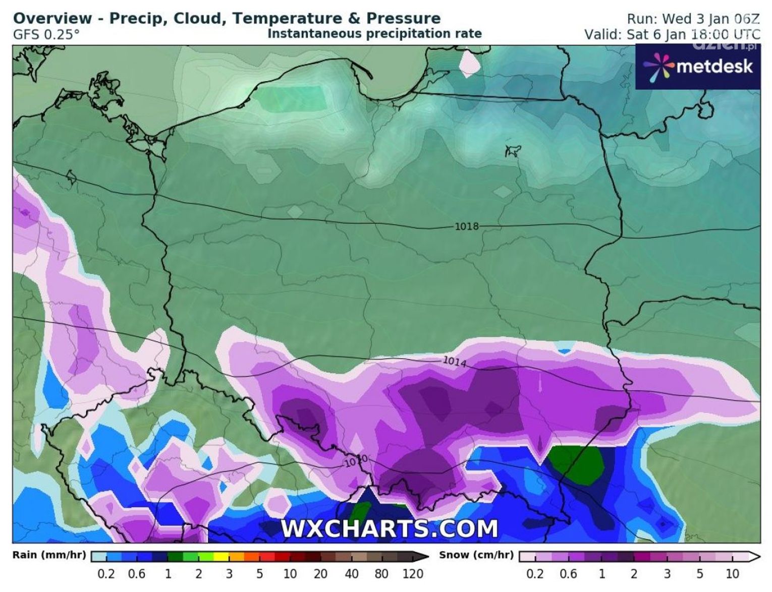 - W zależności od tego jak przejdzie niż z południa europy, możemy mieć do czynienia z intensywnymi opadami śniegu lub marznącego deszczu. Niże Genueńskie są trudne w prognozowaniu, więc ostateczny przebieg poznamy dopiero w sobotę - mówi Wojciech Nadziałek ze Storm Chasers Świętokrzyskie.
