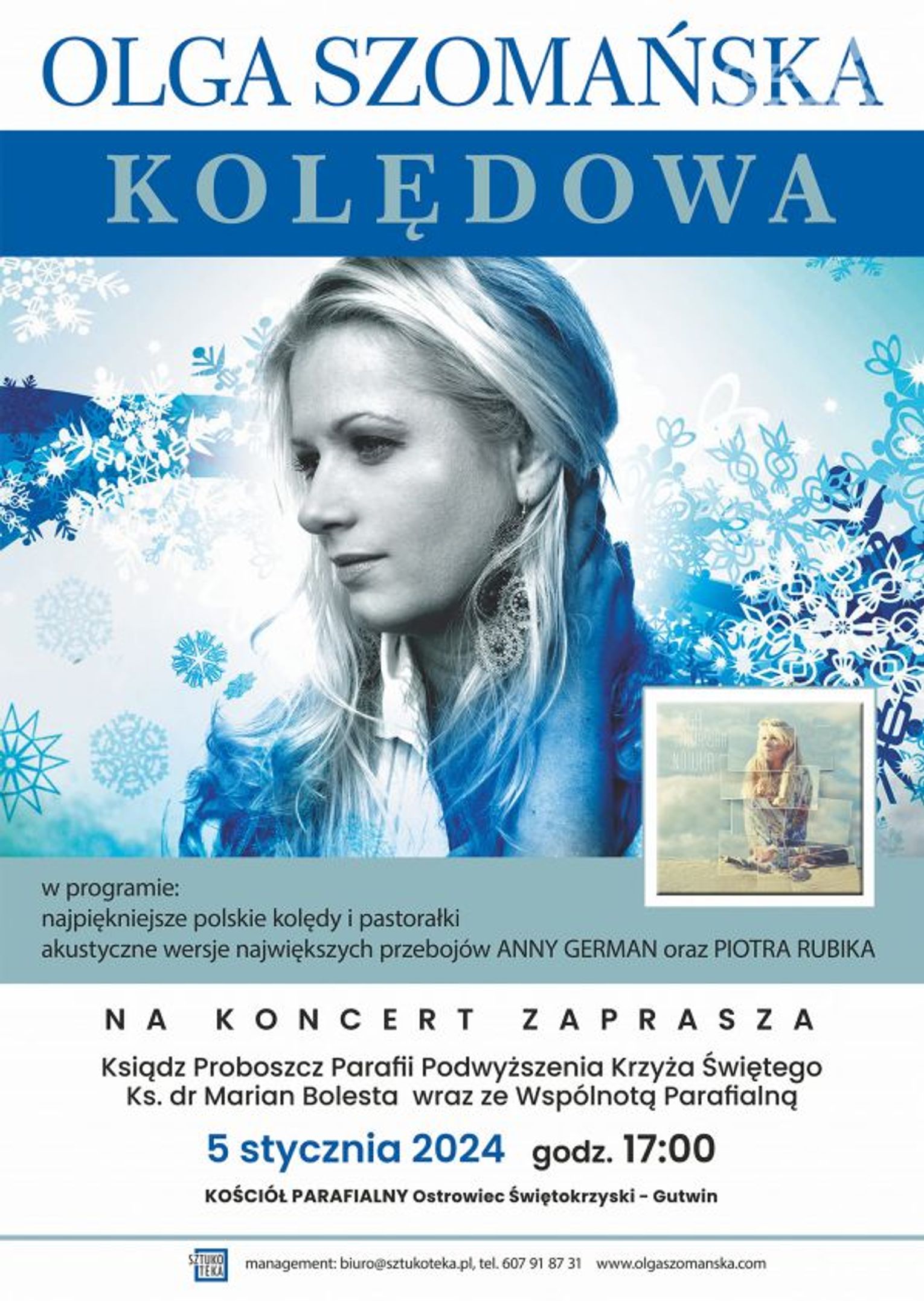 Olga Szomańska w koncercie zatytułowanym pt. "Kolędowa", poza utworami typowo świątecznymi, czyli kolędami i pastorałkami zaprezentuje również swoje utwory z najnowszej płyty "Nówka" i akustyczne wersje największych przebojów Anny German i Piotra Rubika.
