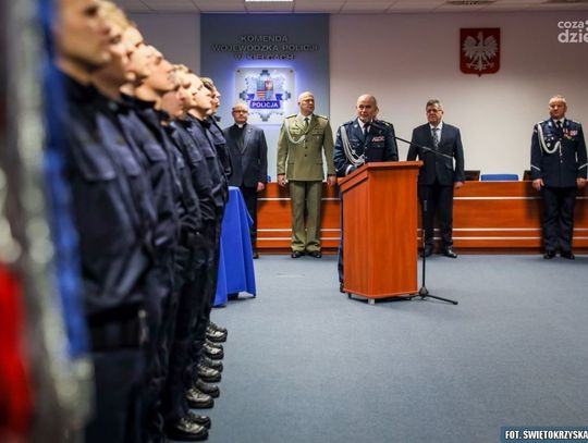 W siedzibie Komendy Wojewódzkiej Policji w Kielcach odbyła się uroczysta zbiórka, podczas której 48 funkcjonariuszy złożyło ślubowanie. Ważnym punktem dzisiejszego spotkania było także wręczenie odznaczeń Zasłużony Policjant.
