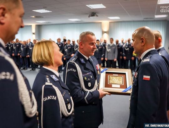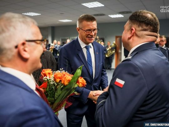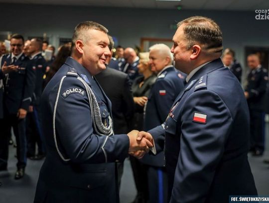 Kolejne chwile uroczystości wypełniały składane podziękowania za długoletnią służbę oraz gratulacje z okazji objęcia stanowiska szefa świętokrzyskiej Policji.