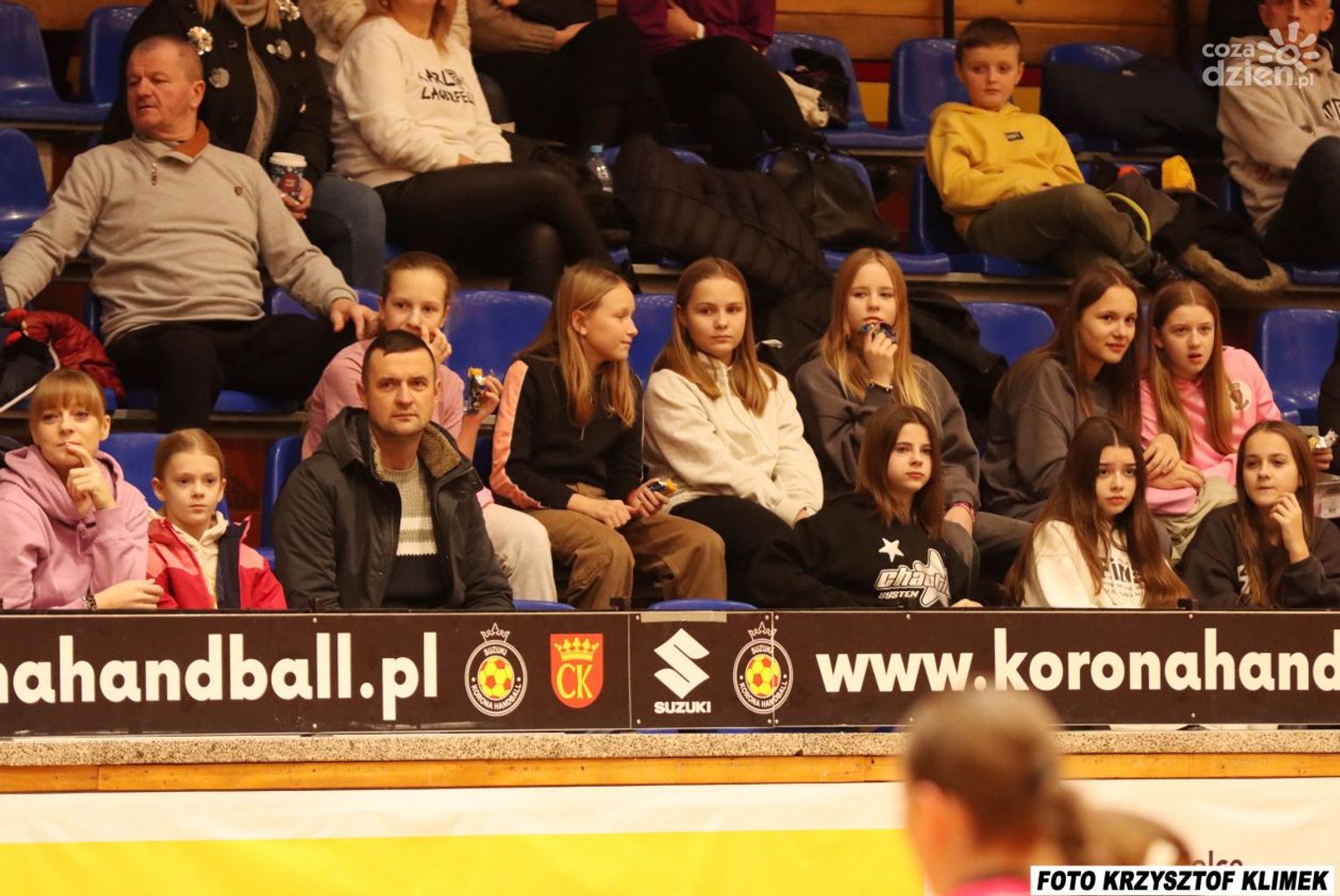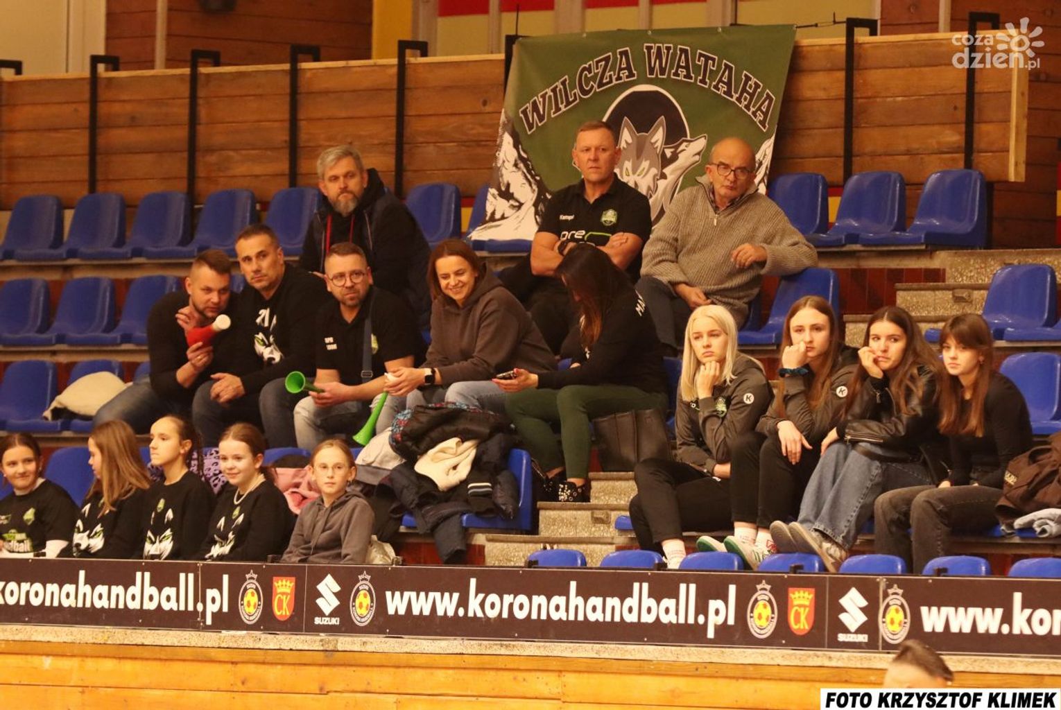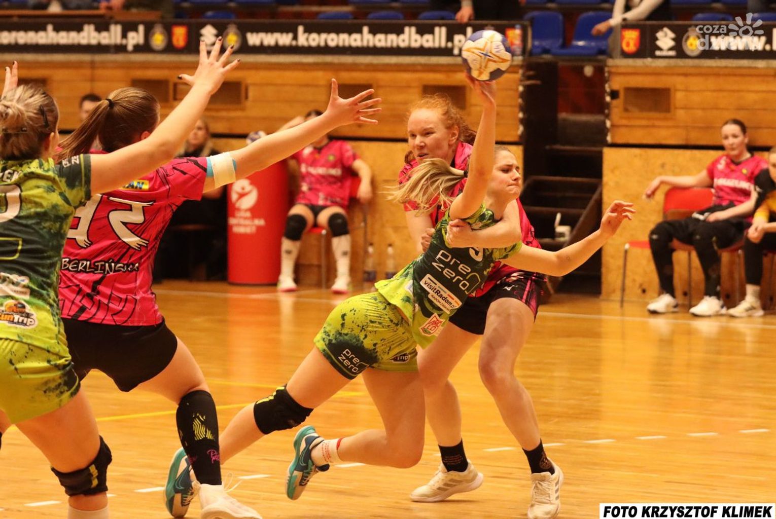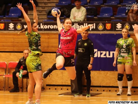 Kielczanki w pierwszej połowie były stroną dominującą i nie pozwalały na wiele swoim rywalkom. Pierwsza połowa zakończyła się pięciobramkową przewagą Korony. Przez większość czasu drugiej odsłony podopieczne Pawła Tetelewskiego utrzymywały wysokie tempo i na osiem minut przed końcem przewaga wynosiła już sześć bramek. Niestety w pewnym momencie coś się zacięło i radomianki zaczęły odrabiać straty.