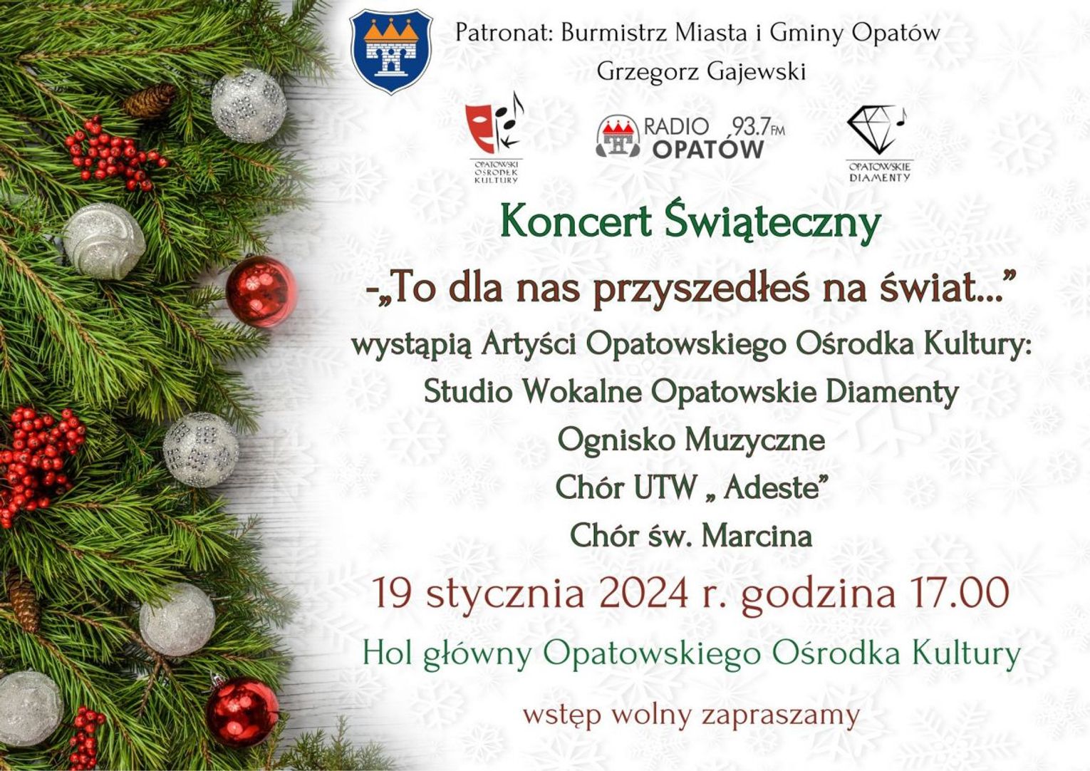 Na koncert świąteczny zapraszają władze Opatowa. Koncert w czasie, którego zabrzmią kolędy i piosenki związane ze świętami Bożego Narodzenia odbędzie się w piątek, 19 stycznia.