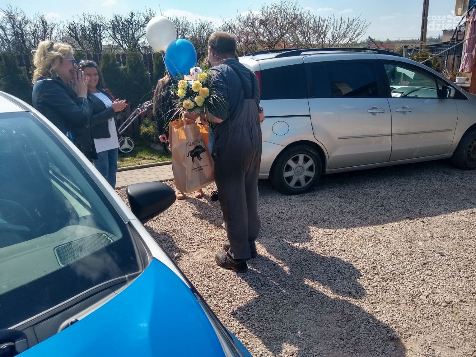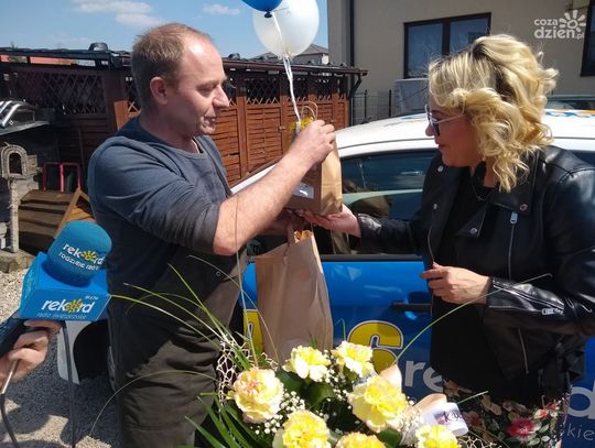 Pan Mariusz zaskoczony przez ekipę Rekordowej Niespodzianki