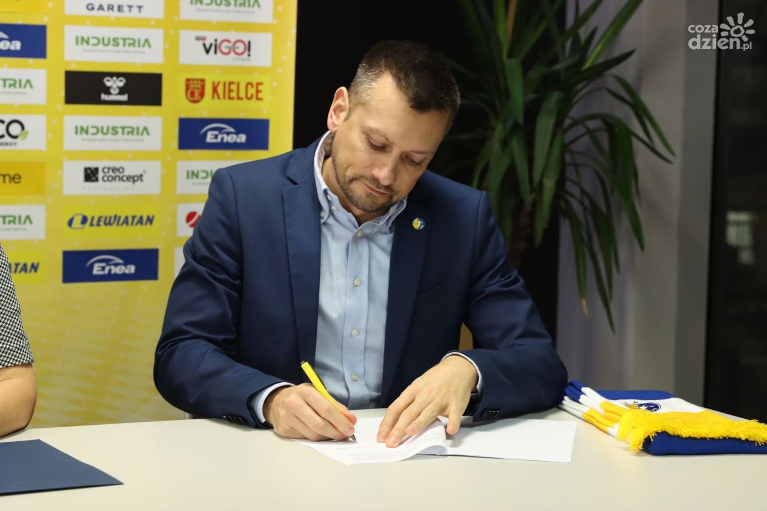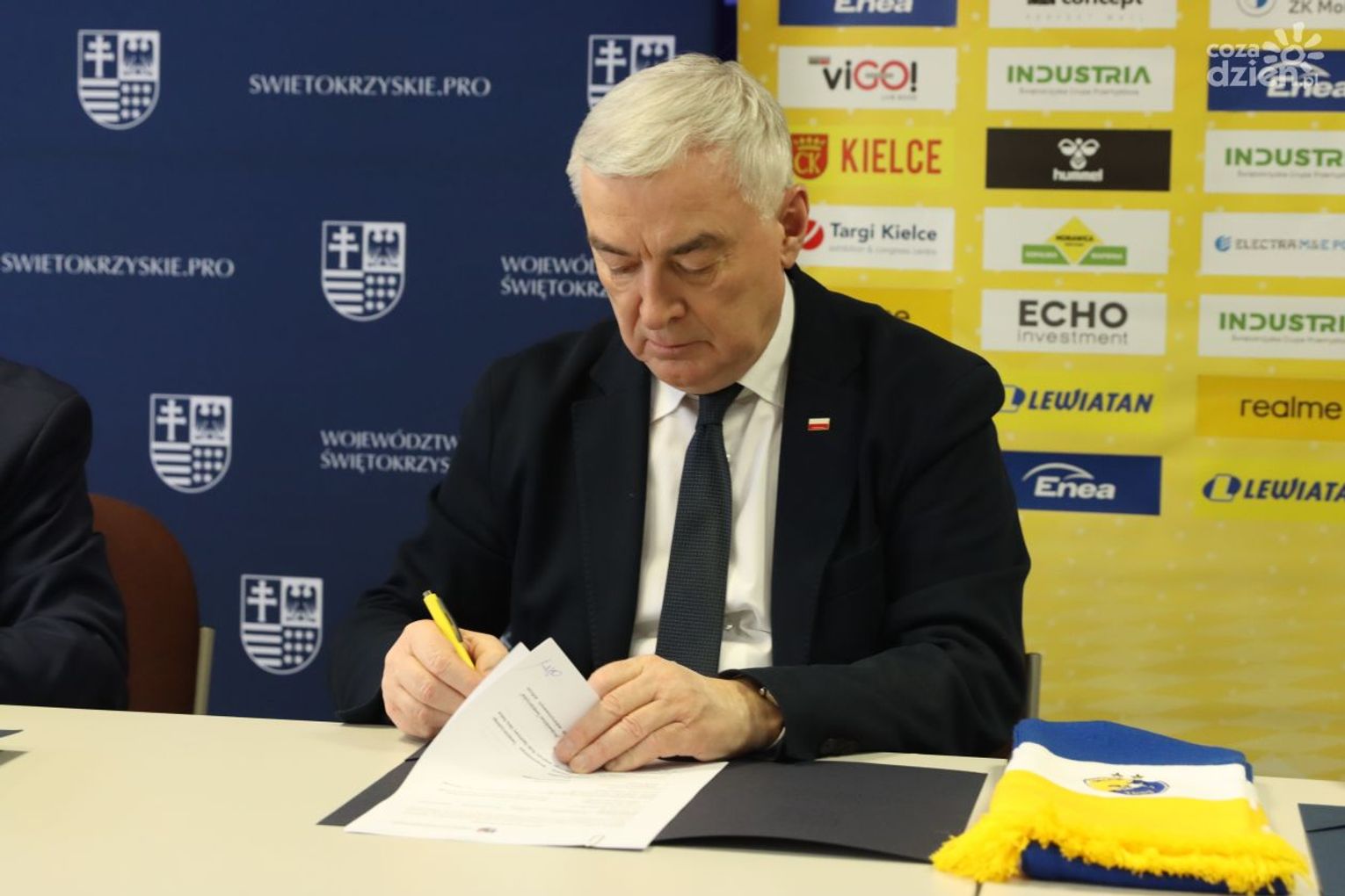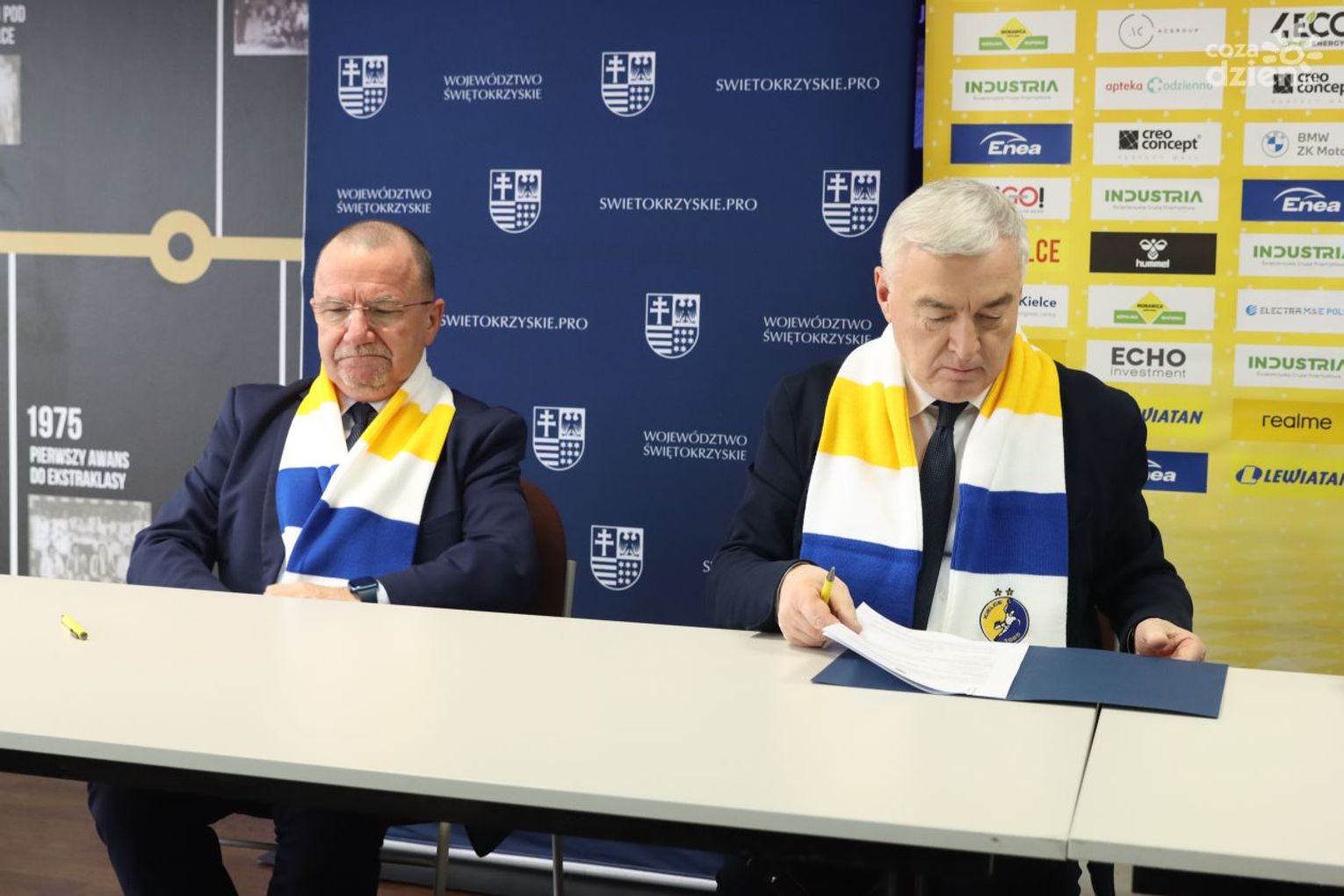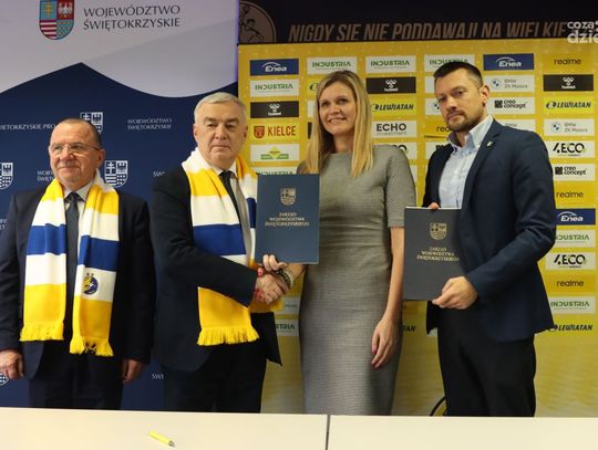 W poniedziałek 5 lutego, o godzinie 11 w Hali Legionów podpisano bardzo ważną umowę promocyjną. Województwo świętokrzyskie reprezentowali, Marszałek Andrzej Bętkowski i jego zastępca, Marek Bogusławski. Po stronie Industrii, swoje podpisy złożyła Magdalena Szczurkiewicz prezes Zarządu, a także wiceprezes Paweł Papaj.