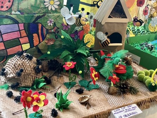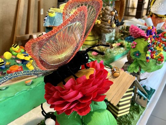 Prace stworzono w ramach realizowanego Programu edukacji ekologicznej dla Powiatu Kieleckiego pn. „Dla Ziemi, dla siebie”. Trudno przejść obok nich obojętnie, przykuwają uwagę petentów urzędu. Są tu misternie wykonane pszczoły i wielkie motyle czy ważki. Niesamowicie prezentują się też ule i kokony. Na wystawie można już zobaczyć, które dzieła zostały wyróżnione przez jury, ale uroczyste wręczenie nagród odbędzie się w siedzibie Starostwa Powiatowego w Kielcach, do końca marca 2024 roku.