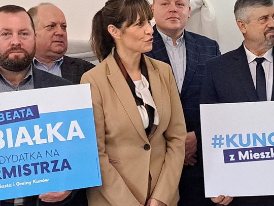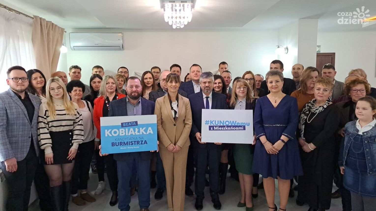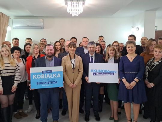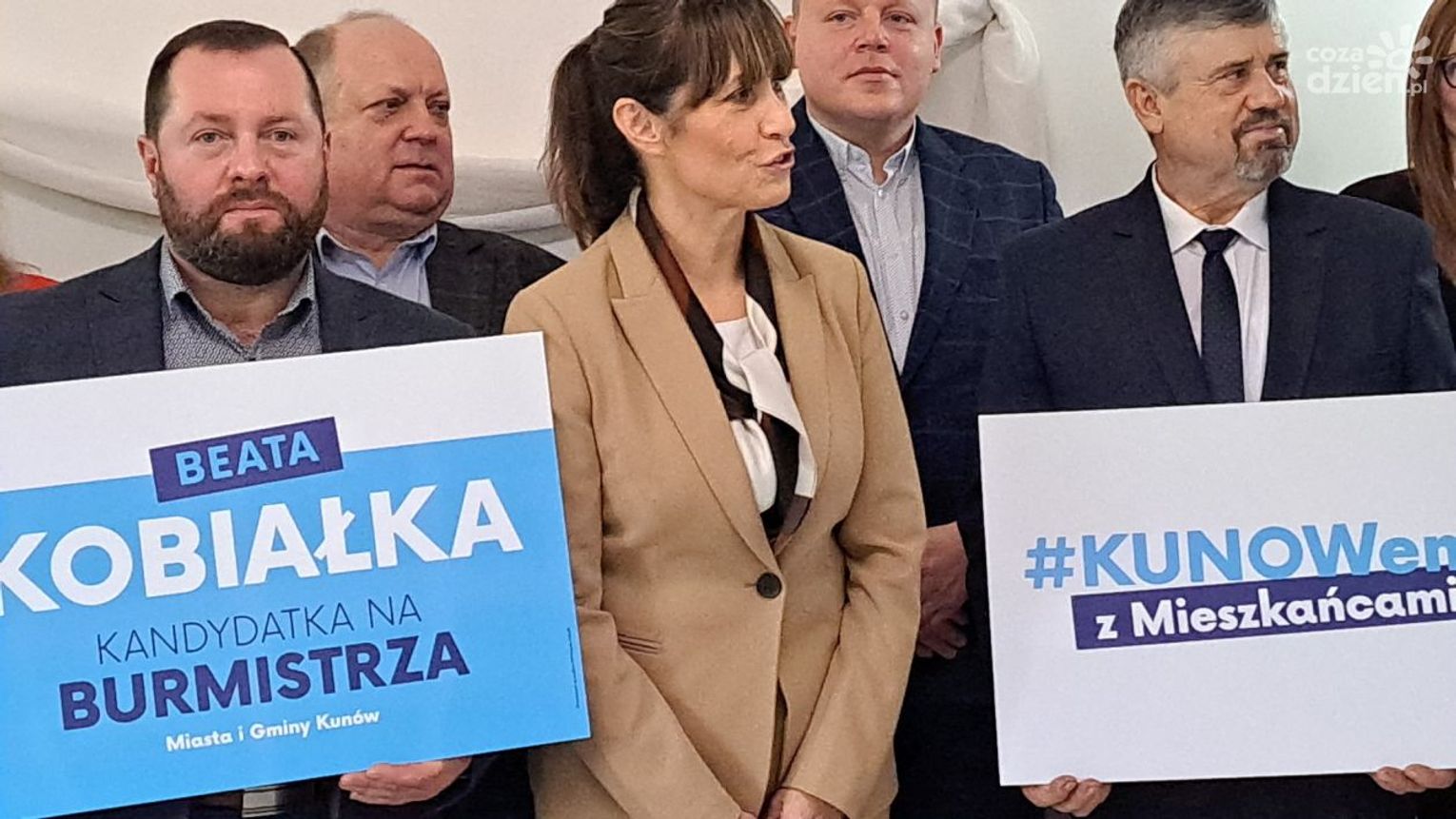 W gminie Kunów o miejsca w radzie miasta i fotel burmistrza będzie walczyła Beata Kobiałka i jej 15 zwolenników. Kandydaci będą walczyli o miejsca z w radzie Kunowa z jednomandatowych okręgów. Liderka listy, Beata Kobiałka stawia na osoby, z nowym spojrzeniem na potrzeby lokalnej społeczności.
