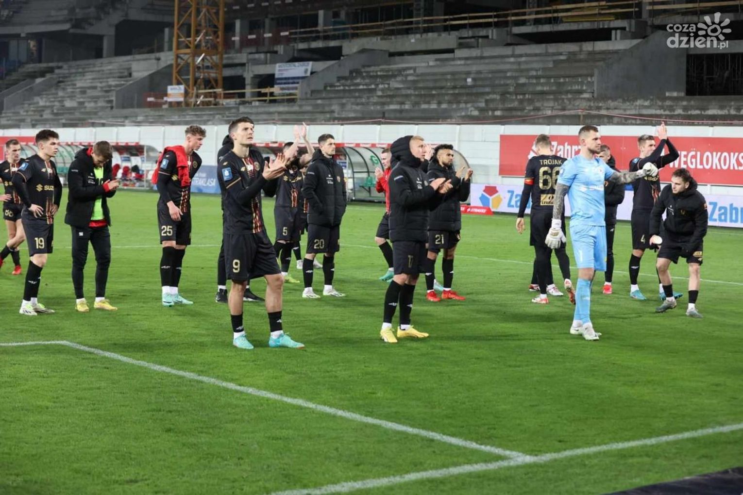 W 21. kolejce żółto-czerwoni mierzyli się na wyjeździe z zabrzańskim Górnikiem. Pierwsze 30. minut spotkania nie były zbyt urodziwe dla kibiców. Dużo niecelnych podań, pustych przerzutów i mało klarownych sytuacji. Jednak im bliżej końca pierwszych 45. minut, tym coraz bliżej bramki znajdowali się podopieczni Jana Urbana. I tak w 35. minucie Sekulić podał w pole karne do Kapralika, który uderzył zewnętrzną częścią stopy. Piłka wychodziła poza plac gry, jednak interwencja Zatora spowodowała, że futbolówka zmieniła kierunek lotu, myląc przy tym Forenca i wpadła do siatki. Gol zaliczony jako trafienie samobójcze kanadyjskiego obrońcy Korony. Chwilę później odpowiedzieli kielczanie. Z lewej strony boiska dośrodkowywał Trejo, a piłkę do własnej bramki wpakował Janicki. Jednak przy tej sytuacji chwilę wcześniej na spalonym był Briceag i sędzia nie uznał wyrównującego trafienia. Chwilę później jeden z zawodników gospodarzy był faulowany blisko pola karnego. Do rzutu wolnego podszedł Lukas Podolski, który uderzył mocno, ale blisko środka bramki. Z tym strzałem nie poradził sobie jednak Konrad Forenc, który "wypluł" futbolówkę. Najszybciej przy niej znalazł się Sebastian Musiolik i z najbliższej odległości wpakował ją do bramki. Korona schodziła do szatni ze spuszczonymi głowami, przegrywając 0:2.
