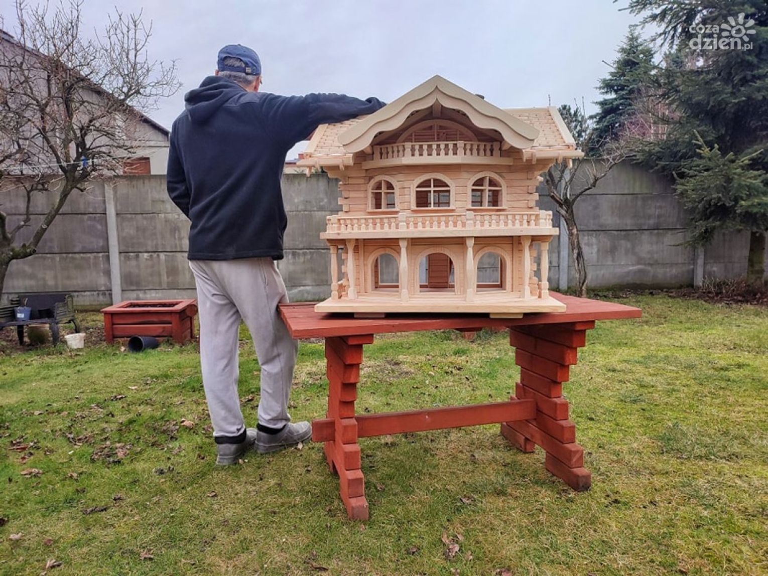 Przestronne karmniki, przypominające zakopiańskie chaty lub hotele, stworzone przez Marcina Szczegielniaka, są teraz nie tylko piękne i misternie wykończone, ale także biją rekordy. Najnowsze dzieło to prawdziwy kolos – karmnik o długości 90 cm, wysokości 80 cm i masie 60 kilogramów. To z pewnością rekord w regionie świętokrzyskim, ale może nawet w kraju. - Taki domek powstaje w czasie od 3 do 6 miesięcy. Ten konkretnie wymagał 80 godzin pracy. Wystrugałem mu 600 dachówek, 130 tralek, 280 balików - mówi Marcin. To nie tylko dzieło sztuki, ale również potężna konstrukcja. Jest dwukrotnie większy od poprzedniego. Z siedmioma wejściami i aż piętnastoma okienkami ma szansę stać się prawdziwą ikoną w świecie ptasiego budownictwa. Takie drewniane arcydzieła stają się centralnym punktem ogrodu, przyciągając spojrzenia i ptasich gości.