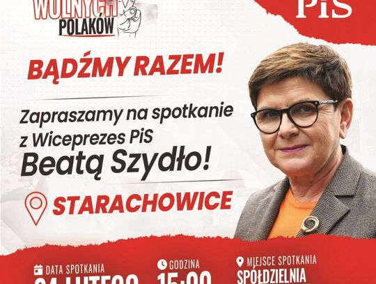 W Starachowicach spotkanie z mieszkańcami odbędzie się w sobotę, 24 lutego o godzinie 15 w Spółdzielni Mieszkaniowej przy ulicy Wojska Polskiego 24. Natomiast do Ostrowca ma przyjechać na godzinę 18. Tu spotka się z mieszkańcami w sali wielofunkcyjnej w Ostrowieckim Browarze Kultury przy ul. Siennieńskiej.
