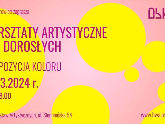 W czwartek odbywają się zajęcia pod nazwą "Kompozycja koloru'. Są to warsztaty artystyczne dla osób dorosłych, można na nich nie tylko poznać nowych znajomych ale także ciekawie i kreatynie spędzić czas.