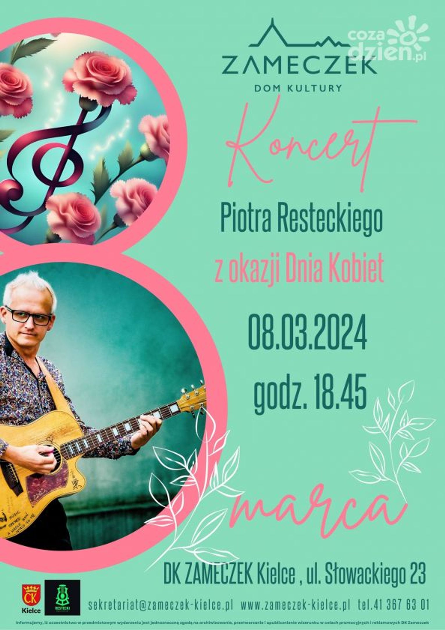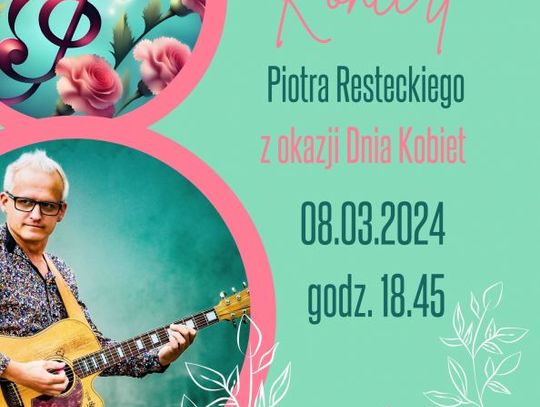 O godz. 18.45 na swój koncert zaprasza Piotr Restecki do Domu Kultury Zameczek. To będą niezapomniane chwile.