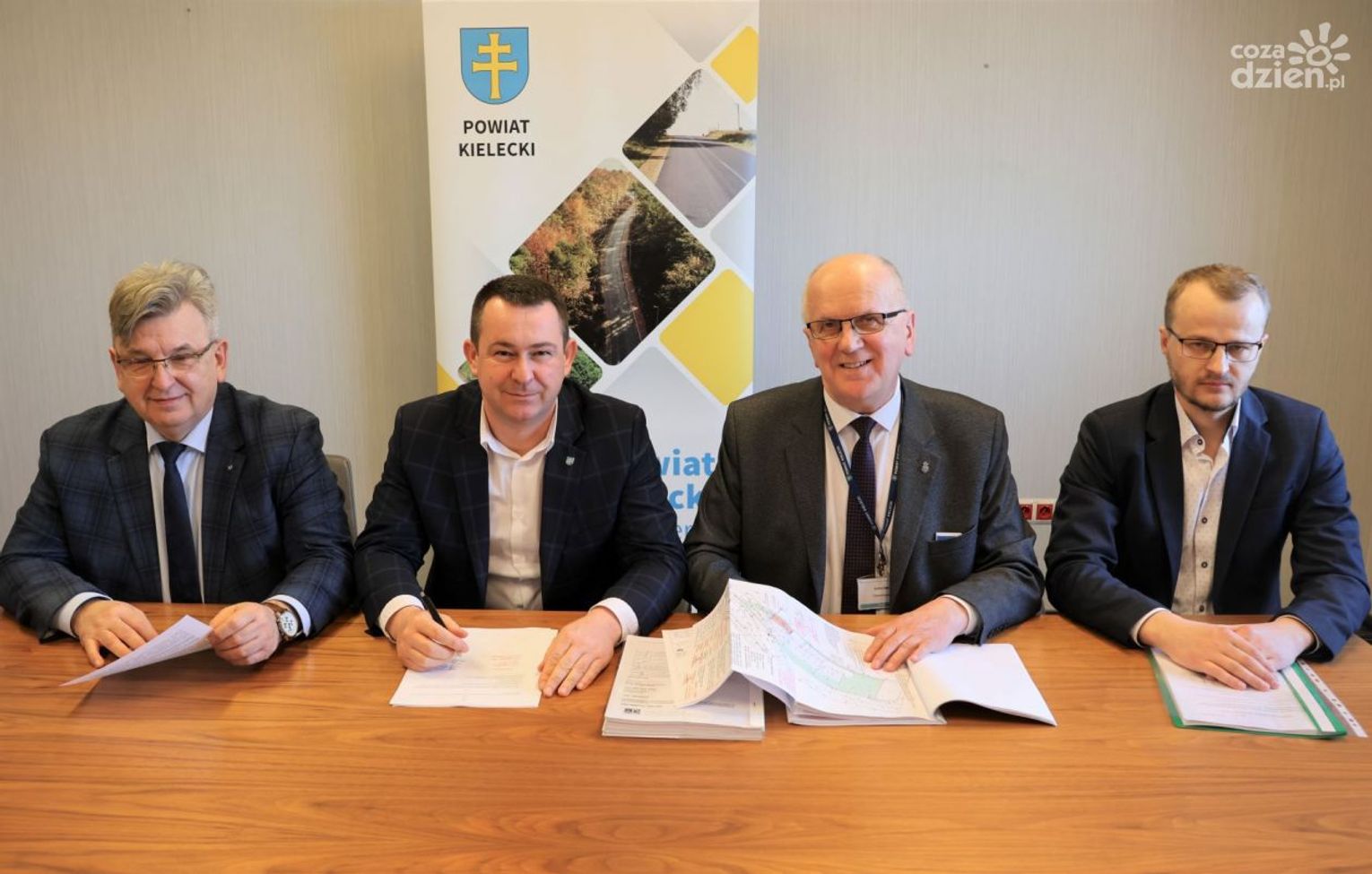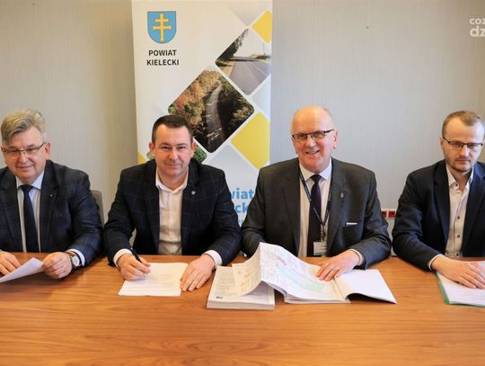 Umowę na realizację tej inwestycji pomiędzy Powiatem Kieleckim a firmą Budowlano-Usługową EM-BUD w Morawicy podpisali wicestarosta kielecki, Tomasz Pleban, oraz członkowie Zarządu Powiatu w Kielcach: Cezary Majcher i Stefan Bąk. Zgodnie z umową, prace budowlane mają być zakończone do 20.11.2025 roku.