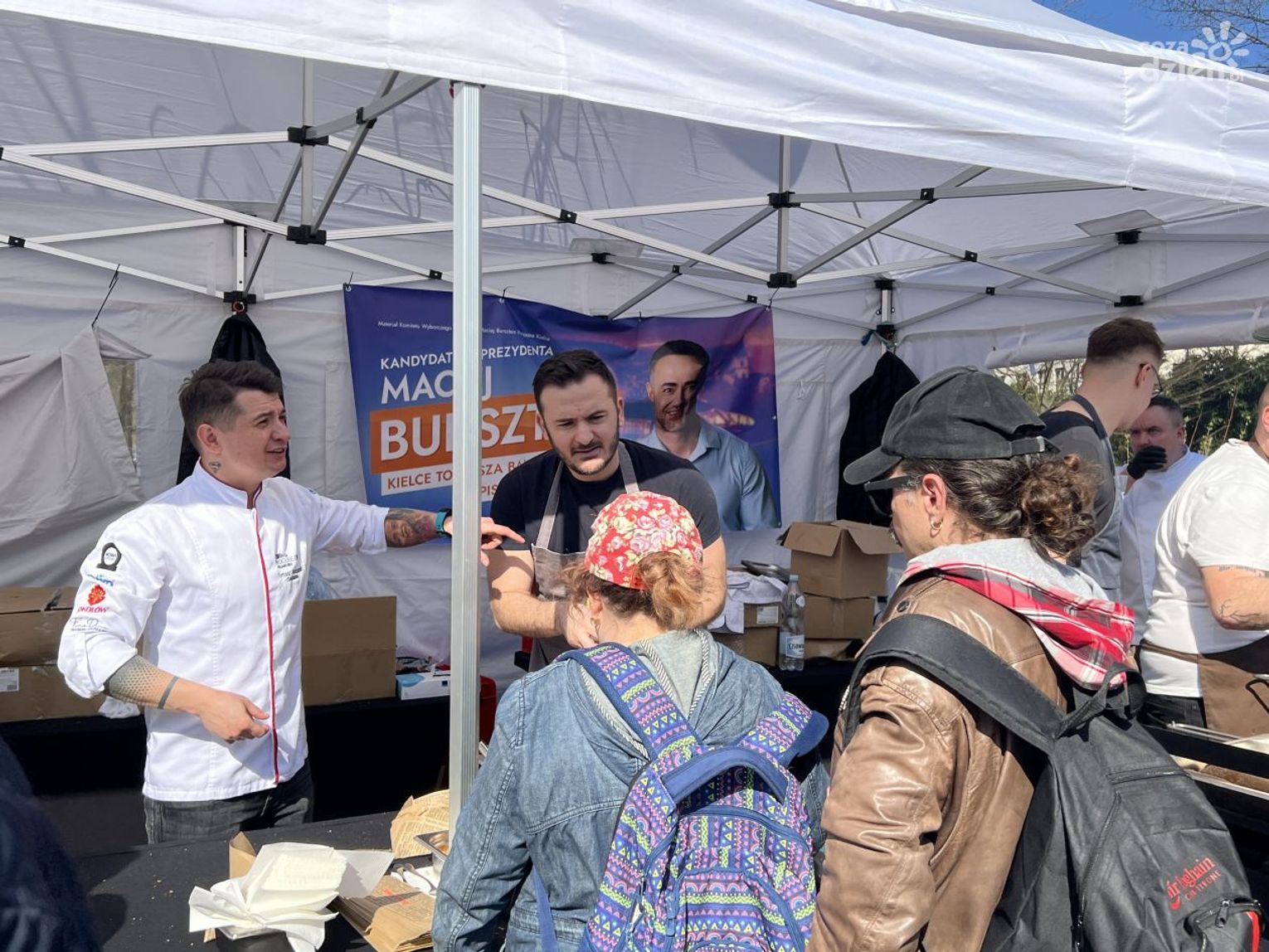 - Chcieliśmy to zrobić w taki sposób, żeby ta "kiełbasa wyborcza" właśnie nie była pączkami, nie była jakimiś ciastkami, czy niczym innym, tylko żeby była po prostu tą kiełbasą wyborczą. To jest to, co chcemy, żeby nas wyróżniało, to właśnie ta autentyczność - podkreślił Maciej Bursztein, kandydat na prezydenta Kielc.
