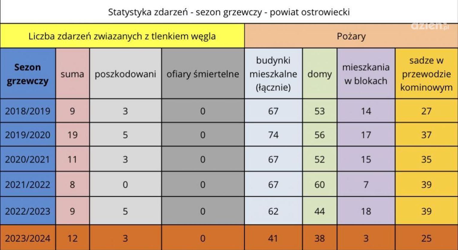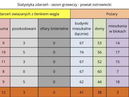 Zwłaszcza w okresie jesienno-zimowym w mieszkaniach i domach jednorodzinnych wzrasta ryzyko powstania pożarów. Najczęściej dochodzi do nich w wyniku wad, albo niewłaściwej eksploatacji urządzeń grzewczych, elektrycznych i gazowych. W tym samym okresie odnotowywany jest także wzrost liczby zatruć tlenkiem węgla, zwanym "cichym zabójcą".