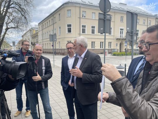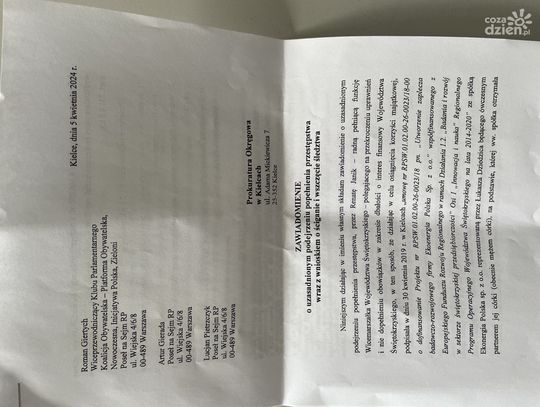 - Składamy dzisiaj do Prokuratury Okręgowej w Kielcach zawiadomienie o uzasadnionym popełnieniu przestępstwa wraz z wnioskiem o ściganie i wszczęcie śledztwa. - mówił poseł Lucjan Pietrzczyk.
