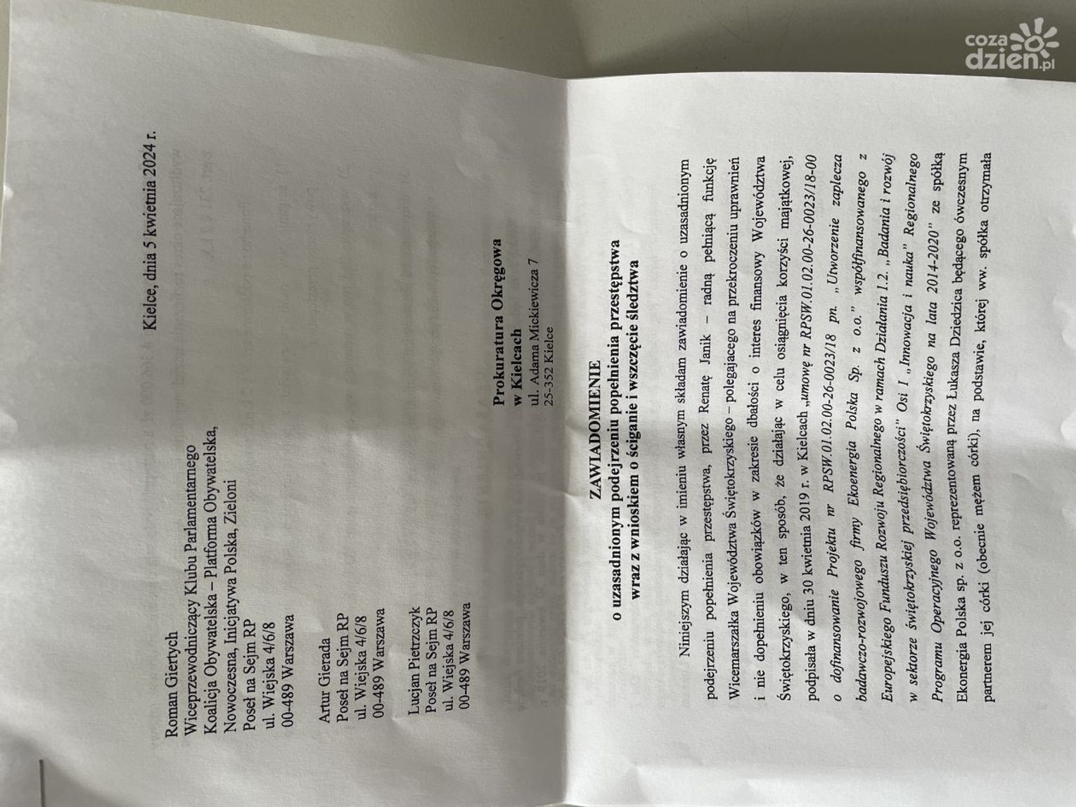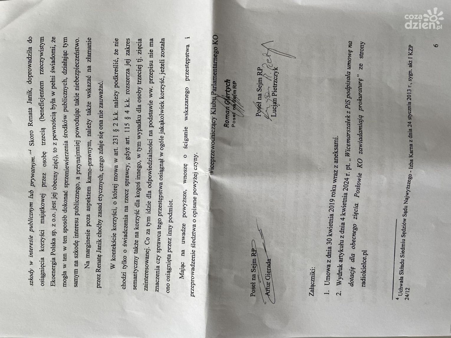 Kilka dni temu zaczęły pojawiać się informacji o rzekomym nadużyciu uprawnień i nie dopełnieniu obowiązków przez Wicemarszałek Województwa Świętokrzyskiego - Renatę Janik. Na takie informacje natrafili świętokrzyscy parlamentarzyści Koalicji Obywatelskiej. Dzisiaj przed godziną 13 złożyli oni zawiadomienie.