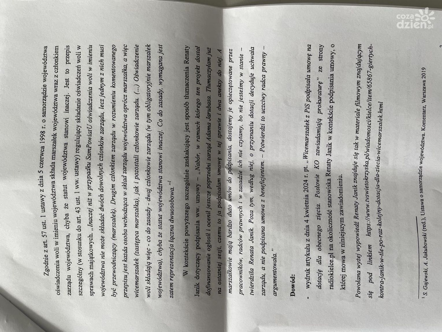 Do zawiadomienia odniosła się Wicemarszałek Renata Janik, która na swoim portalu na Facebooku zamieściła następujące oświadczenie.