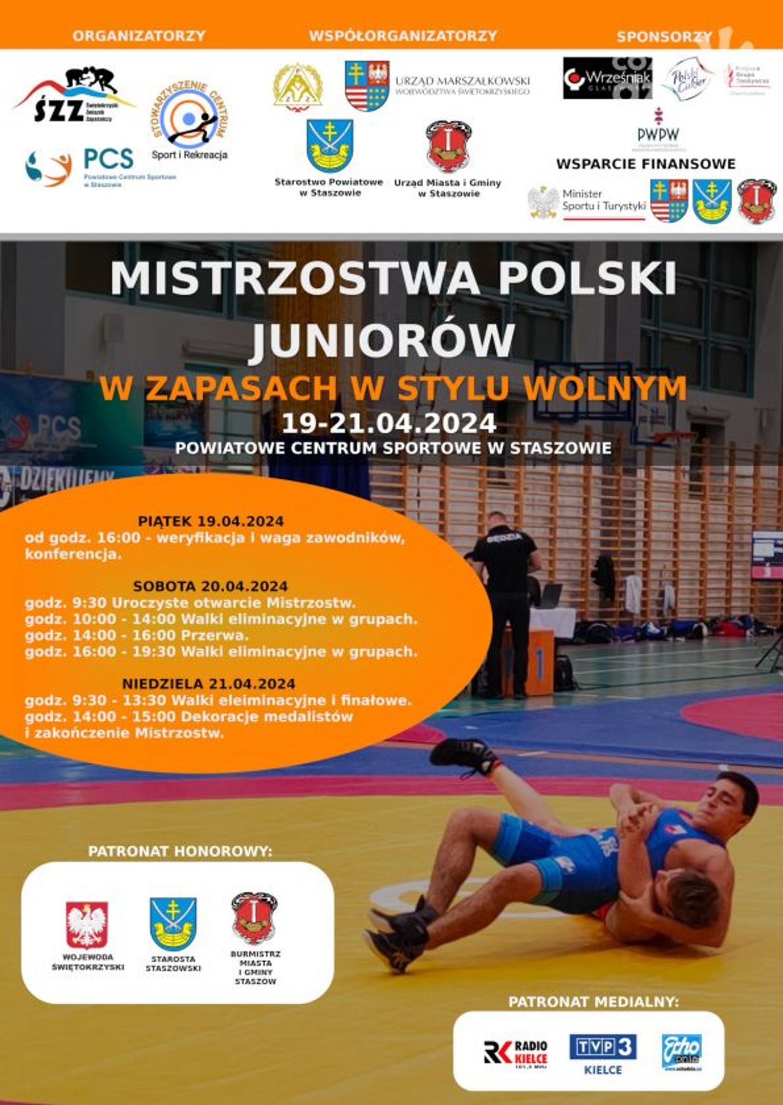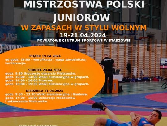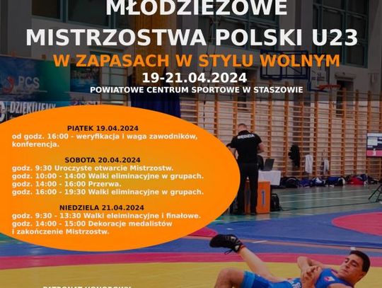 W dniach od 19 do 21 kwietnia w hali Powiatowego Centrum Sportowego w Staszowie odbędą się Mistrzostwa Polski Juniorów w Zapasach w Stylu Wolnym oraz Młodzieżowe Mistrzostwa Polski do lat 23 w Zapasach w Stylu Wolnym. Na staszowskich matach zmierzą się najlepsi młodzi zapaśnicy z całego kraju.