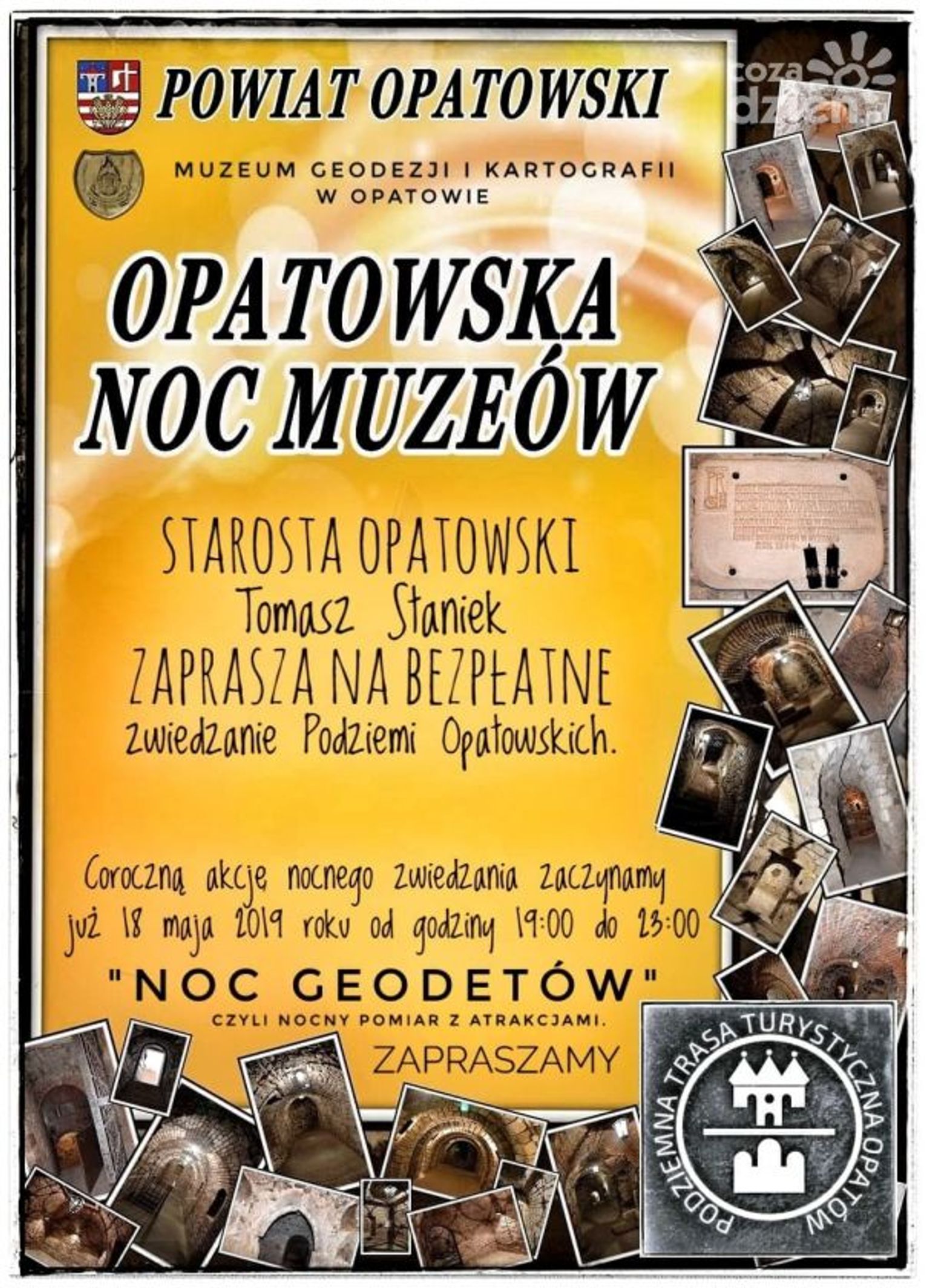 W ramach Opatowskiej Nocy Muzeów zainteresowani będą mieli okazję zwiedzić za darmo podziemia. Obfitujący w wiele atrakcji Nocny Pomiar Podziemnej Trasy rozpocznie się o godz. 19 i potrwa do godz. 23.
