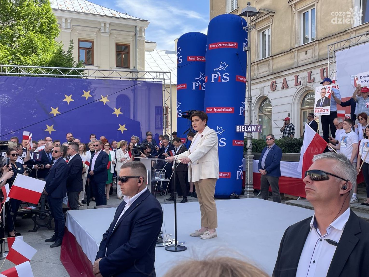 - Tutaj w Kielcach zaczynamy dzisiaj, nasza drużyna biało-czerwona Prawa i Sprawiedliwości, rozpoczyna ważny mecz. Stawką w tym meczu jest nasza suwerenność, nasz rozwój, nasze bezpieczeństwo i normalne życie w Europie. - mówiła eurodeputowana, Beata Szydło.