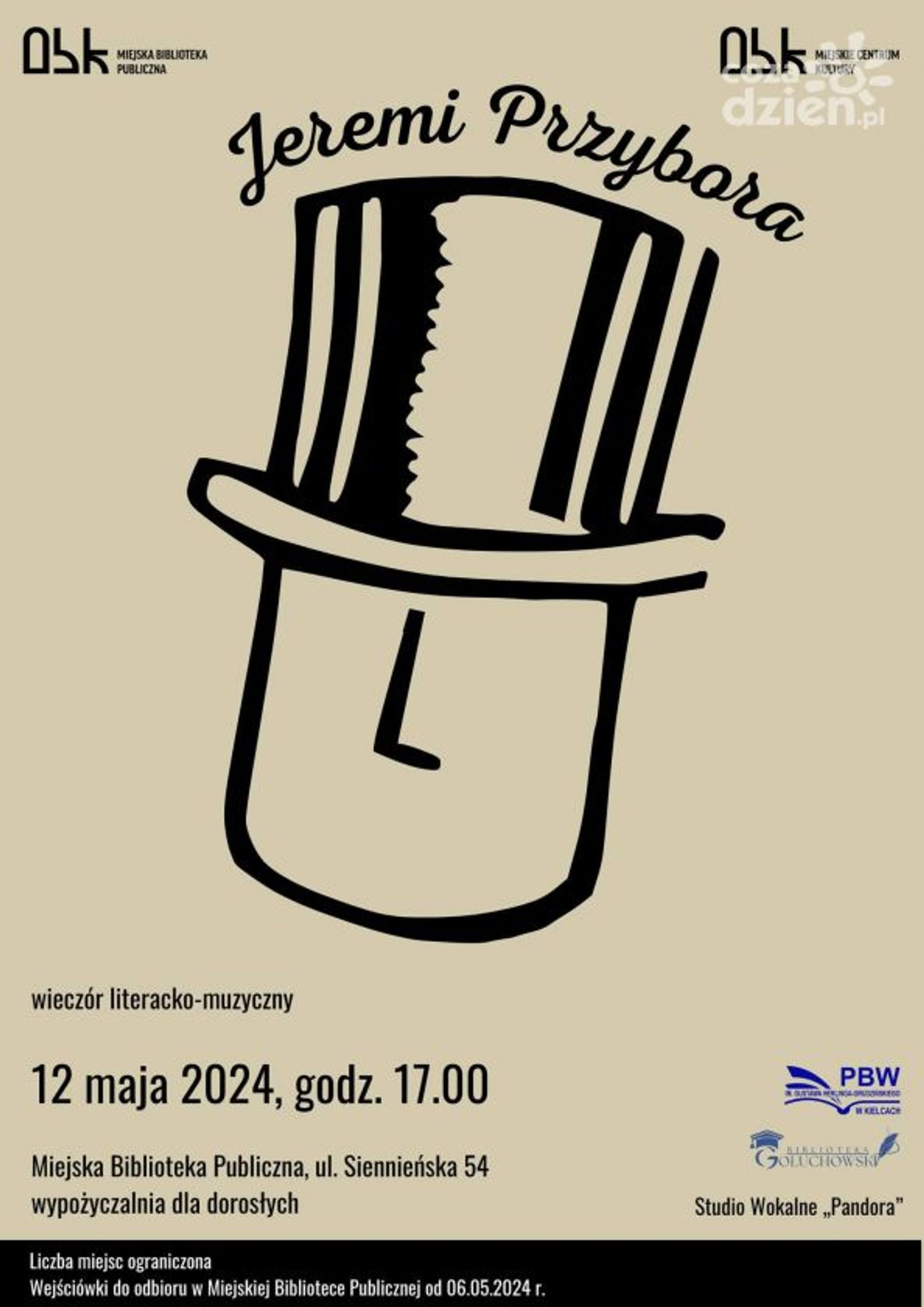 Bezpłatne wejściówki będzie można odbierać już od poniedziałku, 6 maja w Miejskiej Biblioteki Publicznej.
