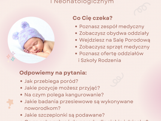 Tego dnia rodzice planujący poród w starachowickiej lecznicy będą mogli zobaczyć od środka obydwa oddziały, a więc położniczo-ginekologiczny z salą Porodową oraz neonatologiczny. Poznają zespół medyczny, wejdą na salę porodową, zobaczą sprzęt medyczny i poznają ofertę oddziałów i Szkoły Rodzenia prowadzonej w tej placówce.