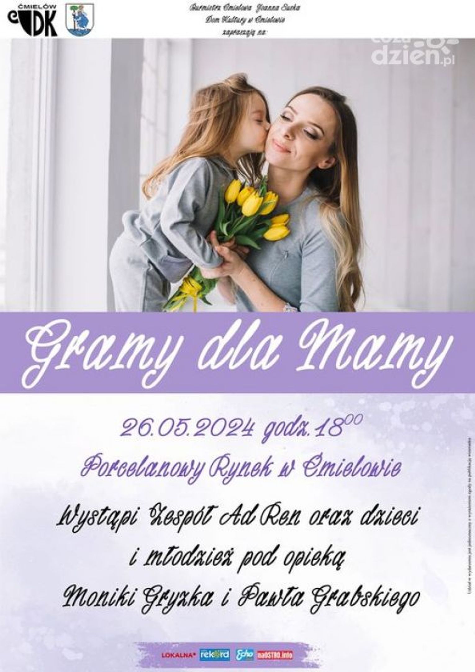 Koncert dla mam, mieszkanek gminy Ćmielów i nie tylko organizuje samorząd tej gminy. Wydarzenie pod nazwą "Gramy dla mamy" odbędzie się oczywiście w niedzielę, 26 maja.