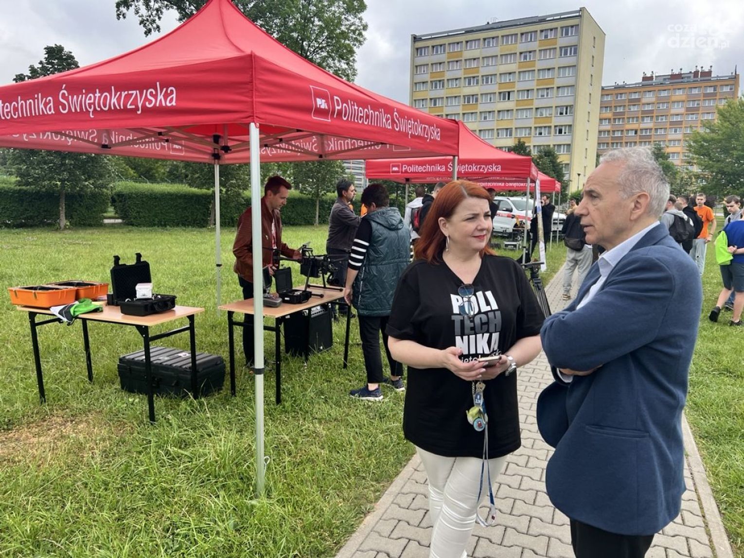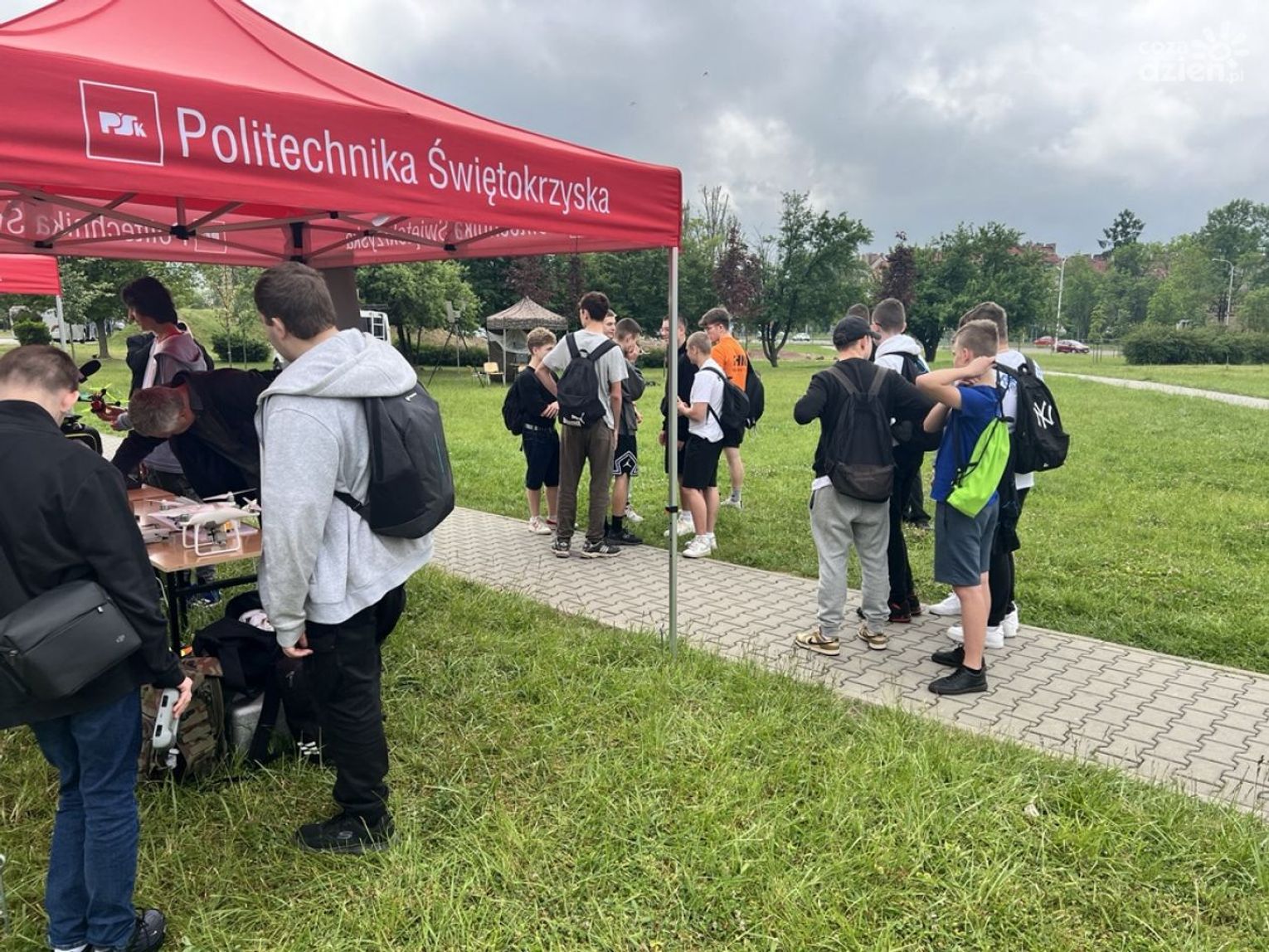 - Również nasi studenci demonstrują pokazy dronów, to co widzimy to drony wykazujące się niezwykłą zwrotnością myśliwską, mają zastosowanie wielorakie - mówi rektor Politechniki Świętokrzyskiej Zbigniew Koruba.