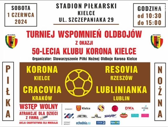 W sobotę 1 czerwca na stadionie przy ulicy Szczepaniaka 29 w Kielcach będzie miało miejsce wyjątkowe wydarzenie. Oldboje Korony Kielce, Resovii Rzeszów, Cracovii Kraków oraz Lublinianki Lublin zmierzą się ze sobą w Turnieju Wspomnień Oldbojów, zorganizowanym z okazji 50-lecia Korony Kielce.