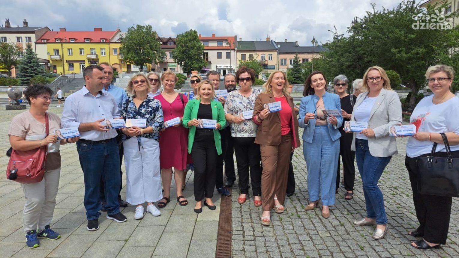 - W 1984 roku Polacy właśnie 4 czerwca zdecydowali, że chcą być częścią demokratycznej Europy. Okazuje się, że po tych 35 latach my znów musimy zaznaczyć swoją obecność. Swoje silne przywiązane do europejskich wartości. Nasi przeciwnicy chcą, żeby Europa była słaba a my chcemy, żeby Europa byłą silna. Bo tylko w silnej Europie Polska będzie bezpieczna.
