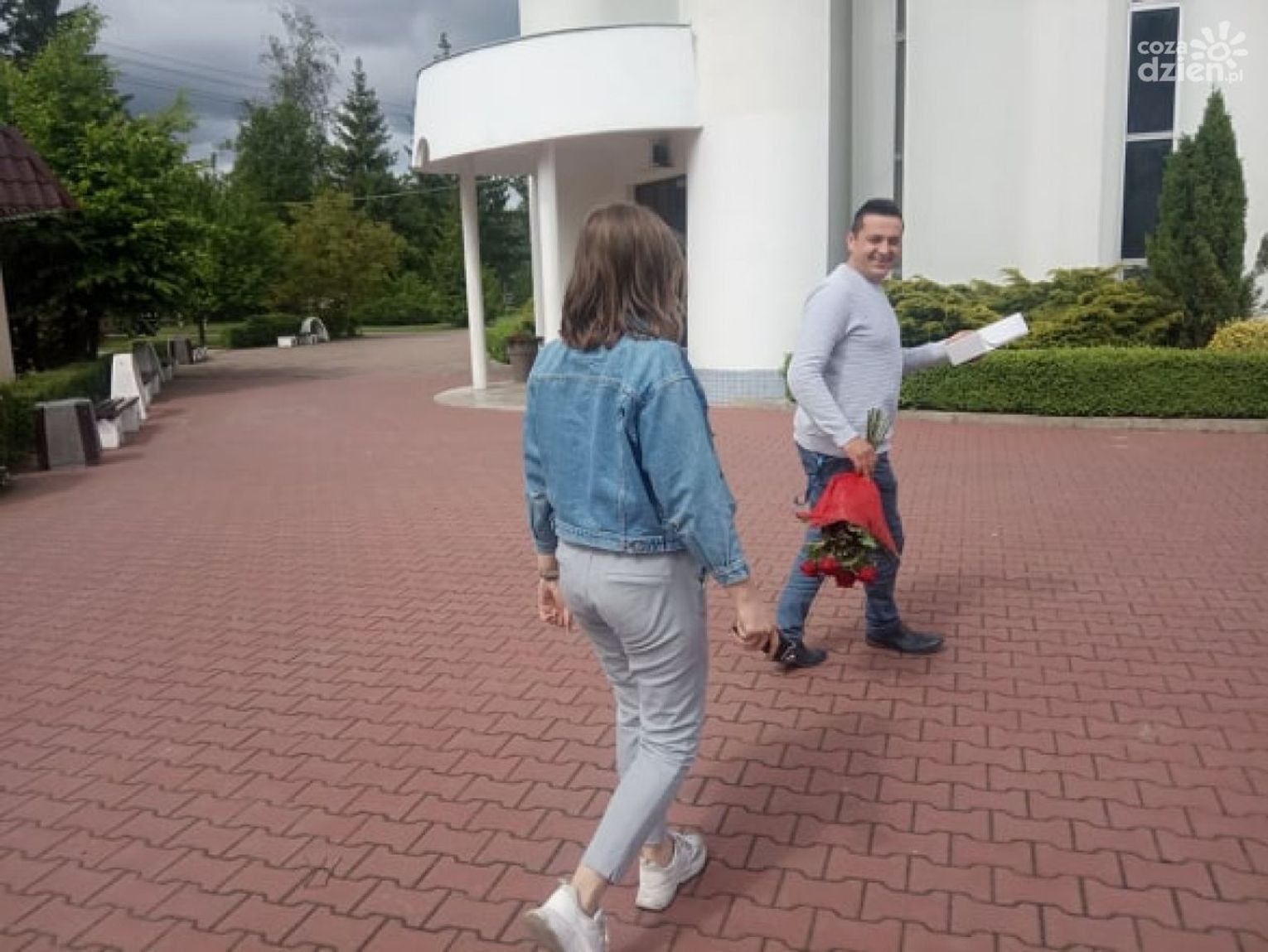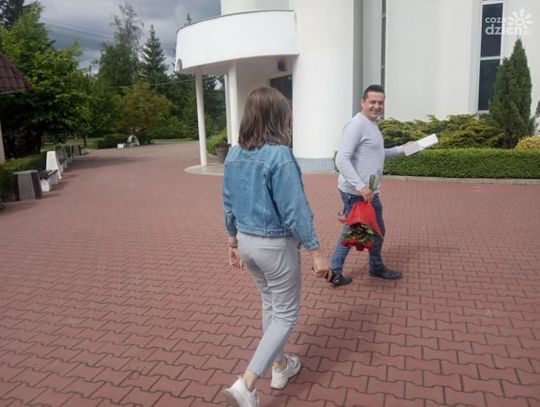 Rekordowa Niespodzianka potrafi zaskoczyć. Tym razem zaskoczenie było podwójne. Zaintrygowani zgłoszeniem męża dotarliśmy w dość nietypowe miejsce, bo do... Zakładu Usług Pogrzebowych. Nasza wizyta była podyktowana urodzinami pani Eweliny, która w ZUP-ie pracuje, jako księgowa.