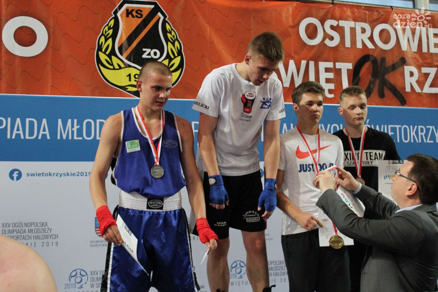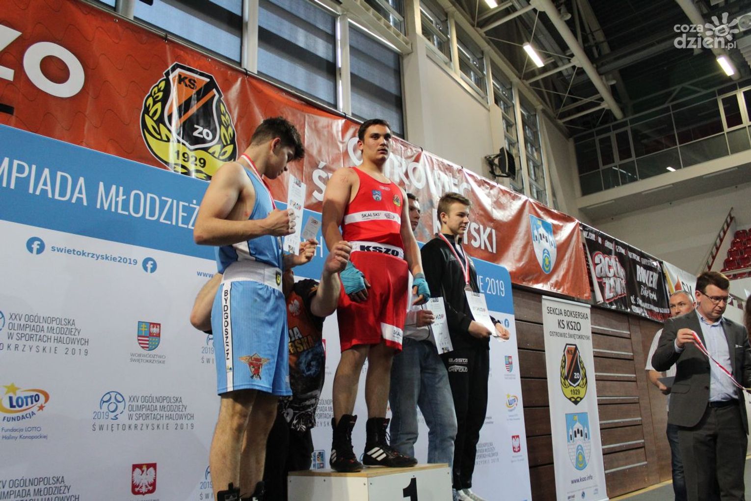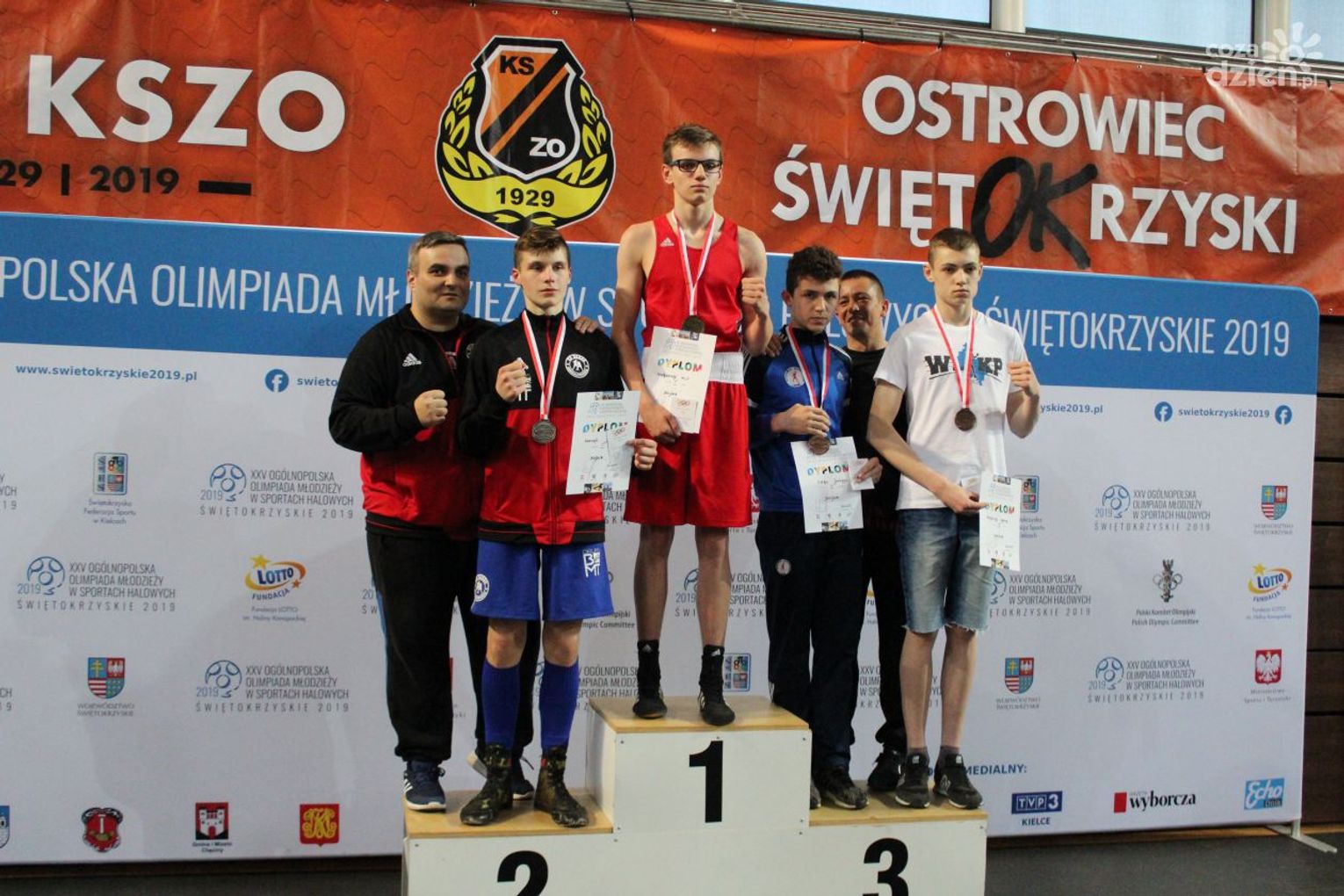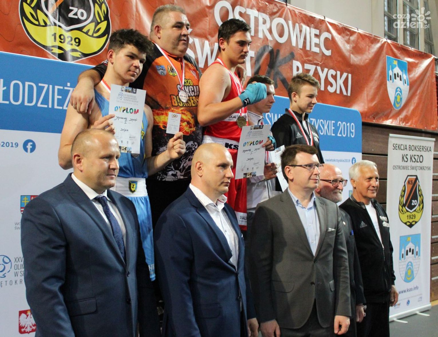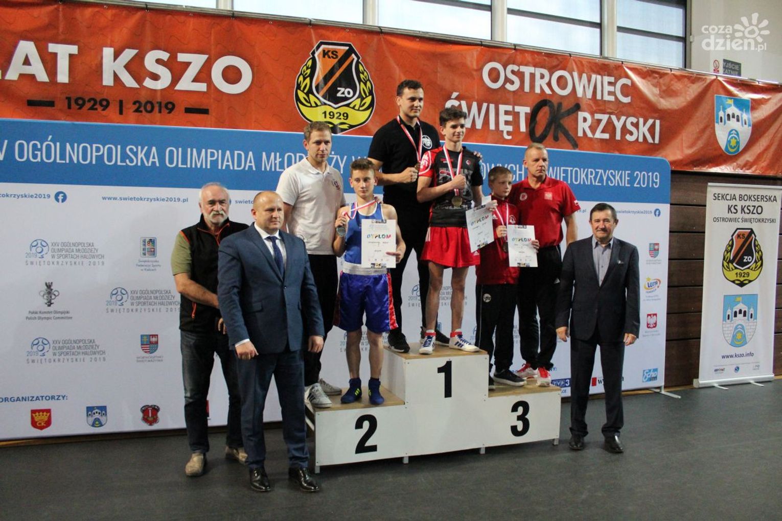 Na rozgrywanych w Ostrowcu zawodach wzięło udział ponad 150 zawodników z całej Polski, niedziela była ostatnim dniem wydarzenia i zarówno ostatnim dniem rozgrywanej od początku kwietnia na świętokrzyskiej ziemi XXV Ogólnopolskiej Olimpiady Młodzieży w sportach halowych. Podczas uroczystego zakończenia na hali przy Świętokrzyskiej gościliśmy min. Grzegorza Nowaczka prezesa Polskiego Związku Bokserskiego, Jacka Kowalczyka z Departamentu Sportu i Turystyki Świętokrzyskiego Urzędu Marszałkowskiego oraz prezydenta Ostrowca Świętokrzyskiego Jarosława Górczyńskiego. Uroczystość była również doskonałą okazją do uhonorowania okolicznościowym medalem Polskiego Związku Bokserskiego trenera pięściarzy KSZO Eugeniusza Ciocha, który w tym roku obchodzi jubileusz 40 - lecia pracy na rzecz świętokrzyskiego pięściarstwa.
