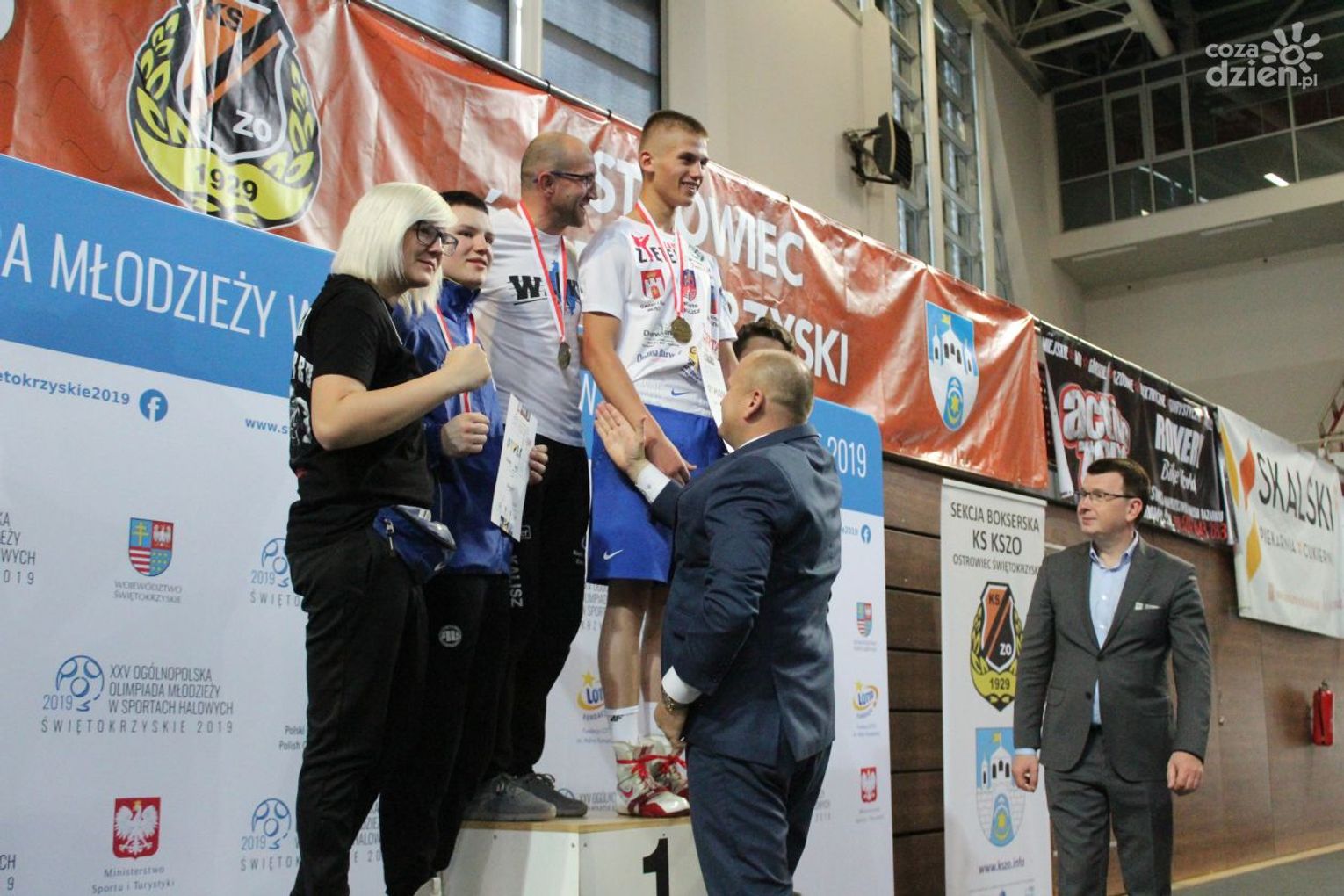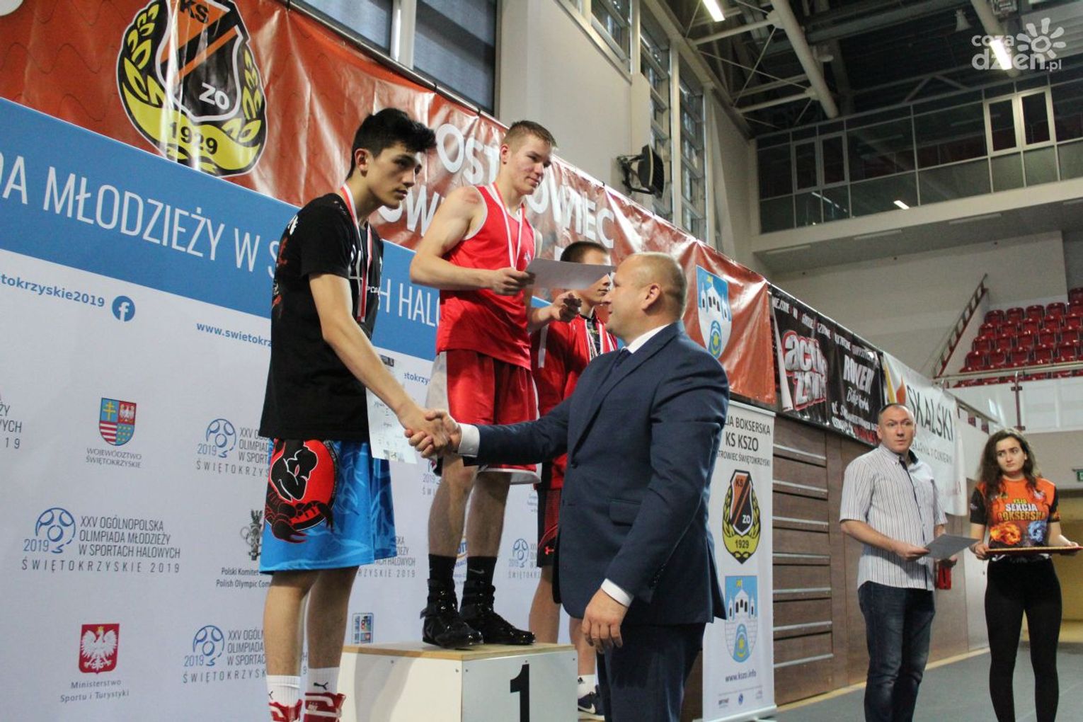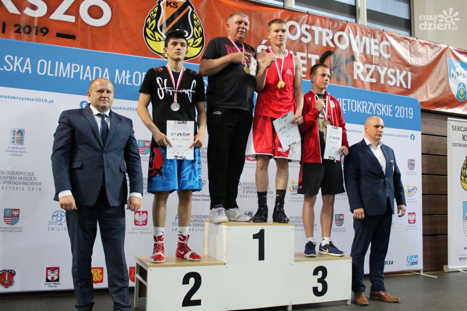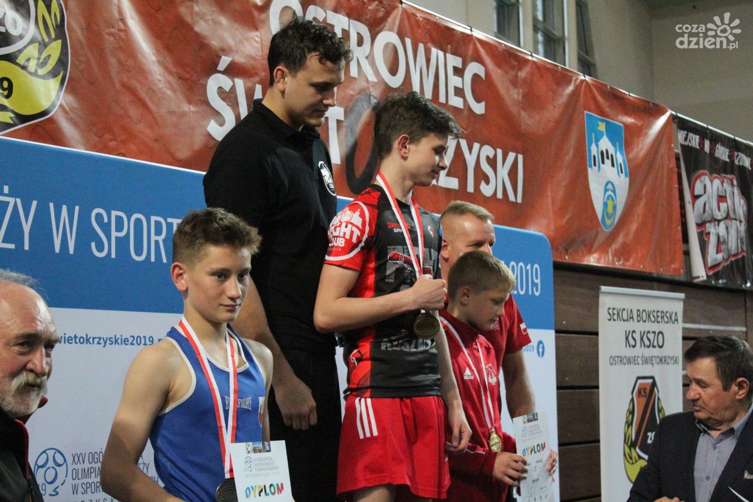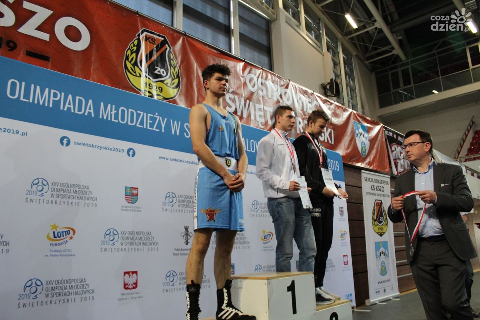 Na rozgrywanych w Ostrowcu zawodach wzięło udział ponad 150 zawodników z całej Polski, niedziela była ostatnim dniem wydarzenia i zarówno ostatnim dniem rozgrywanej od początku kwietnia na świętokrzyskiej ziemi XXV Ogólnopolskiej Olimpiady Młodzieży w sportach halowych. Podczas uroczystego zakończenia na hali przy Świętokrzyskiej gościliśmy min. Grzegorza Nowaczka prezesa Polskiego Związku Bokserskiego, Jacka Kowalczyka z Departamentu Sportu i Turystyki Świętokrzyskiego Urzędu Marszałkowskiego oraz prezydenta Ostrowca Świętokrzyskiego Jarosława Górczyńskiego. Uroczystość była również doskonałą okazją do uhonorowania okolicznościowym medalem Polskiego Związku Bokserskiego trenera pięściarzy KSZO Eugeniusza Ciocha, który w tym roku obchodzi jubileusz 40 - lecia pracy na rzecz świętokrzyskiego pięściarstwa.