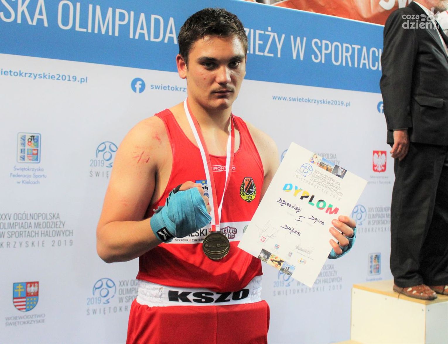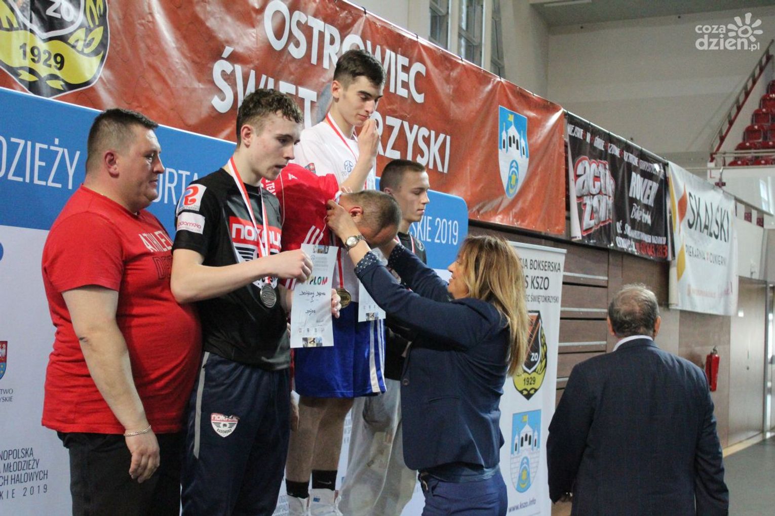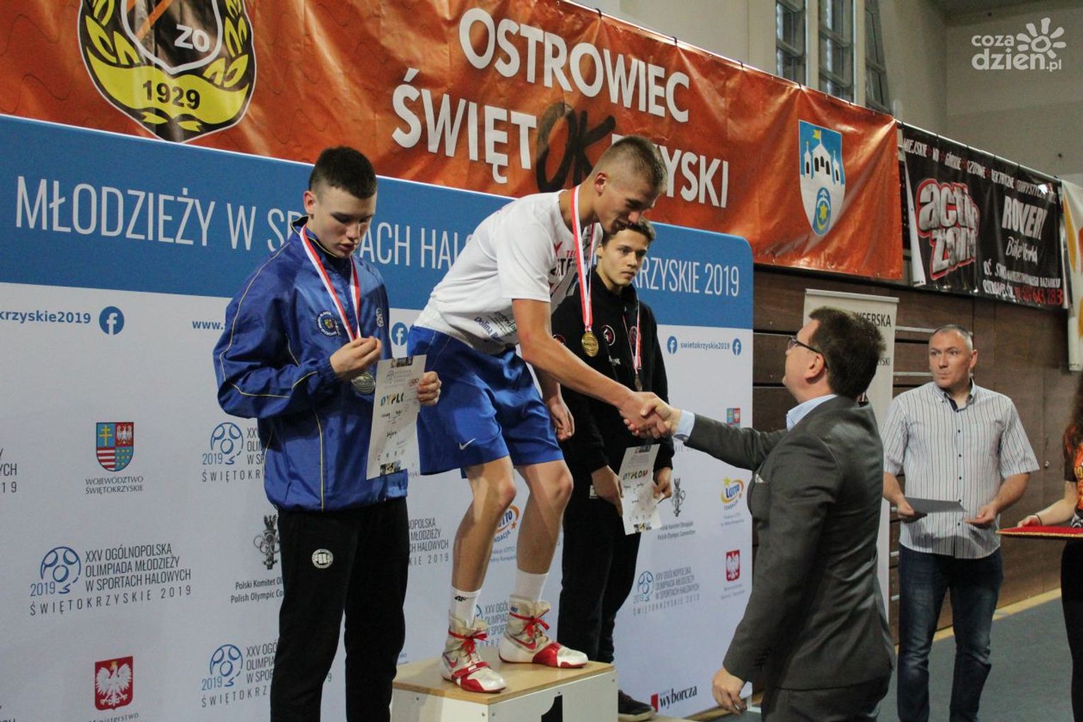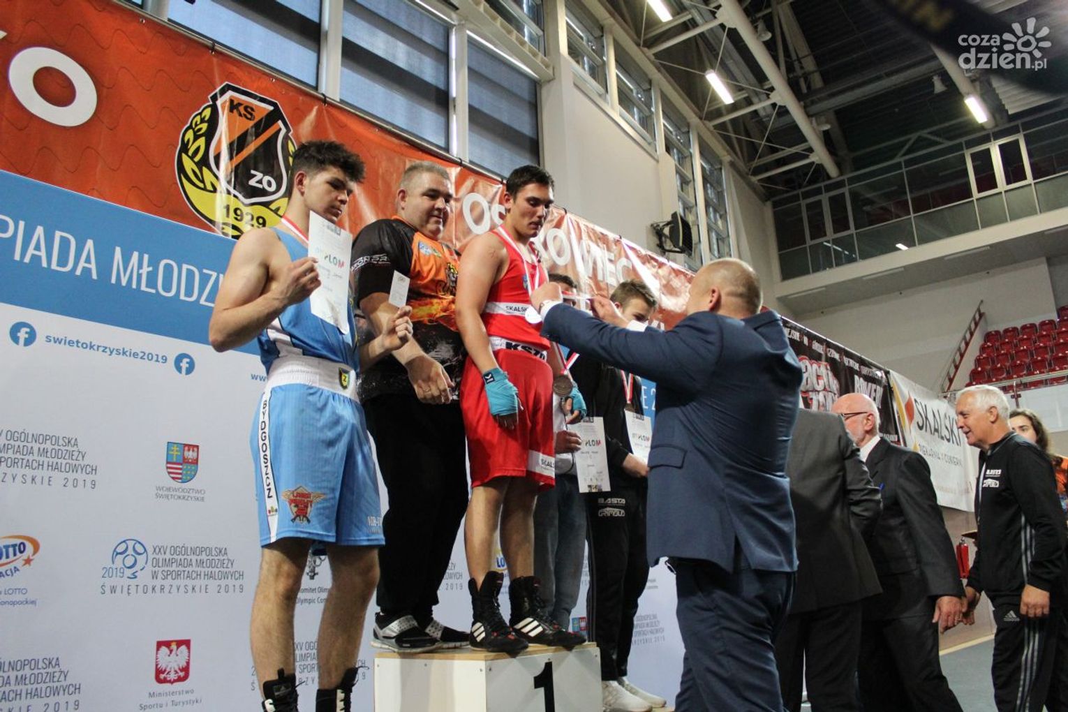 Na rozgrywanych w Ostrowcu zawodach wzięło udział ponad 150 zawodników z całej Polski, niedziela była ostatnim dniem wydarzenia i zarówno ostatnim dniem rozgrywanej od początku kwietnia na świętokrzyskiej ziemi XXV Ogólnopolskiej Olimpiady Młodzieży w sportach halowych. Podczas uroczystego zakończenia na hali przy Świętokrzyskiej gościliśmy min. Grzegorza Nowaczka prezesa Polskiego Związku Bokserskiego, Jacka Kowalczyka z Departamentu Sportu i Turystyki Świętokrzyskiego Urzędu Marszałkowskiego oraz prezydenta Ostrowca Świętokrzyskiego Jarosława Górczyńskiego. Uroczystość była również doskonałą okazją do uhonorowania okolicznościowym medalem Polskiego Związku Bokserskiego trenera pięściarzy KSZO Eugeniusza Ciocha, który w tym roku obchodzi jubileusz 40 - lecia pracy na rzecz świętokrzyskiego pięściarstwa.