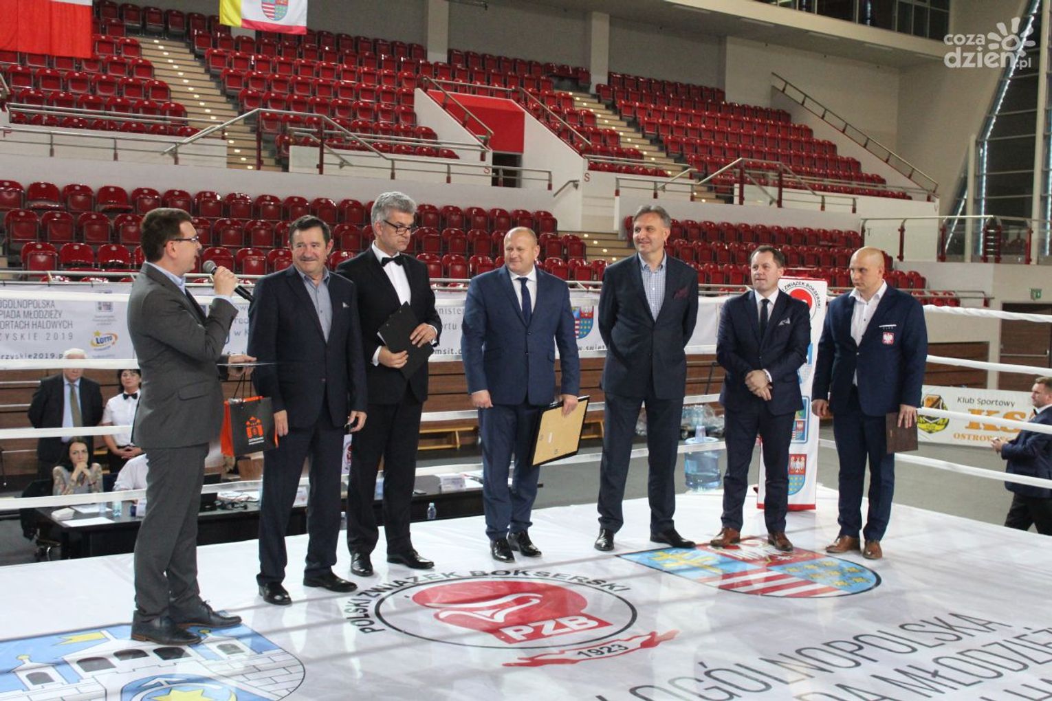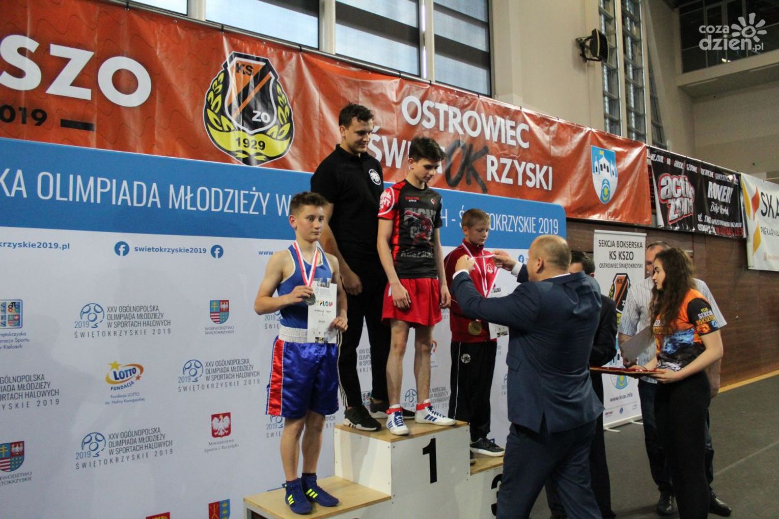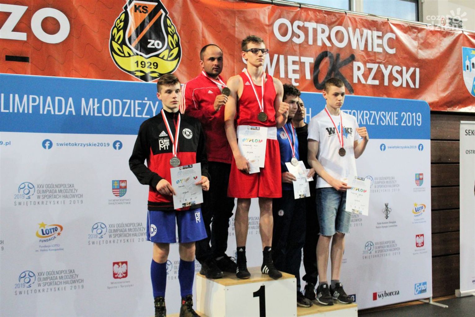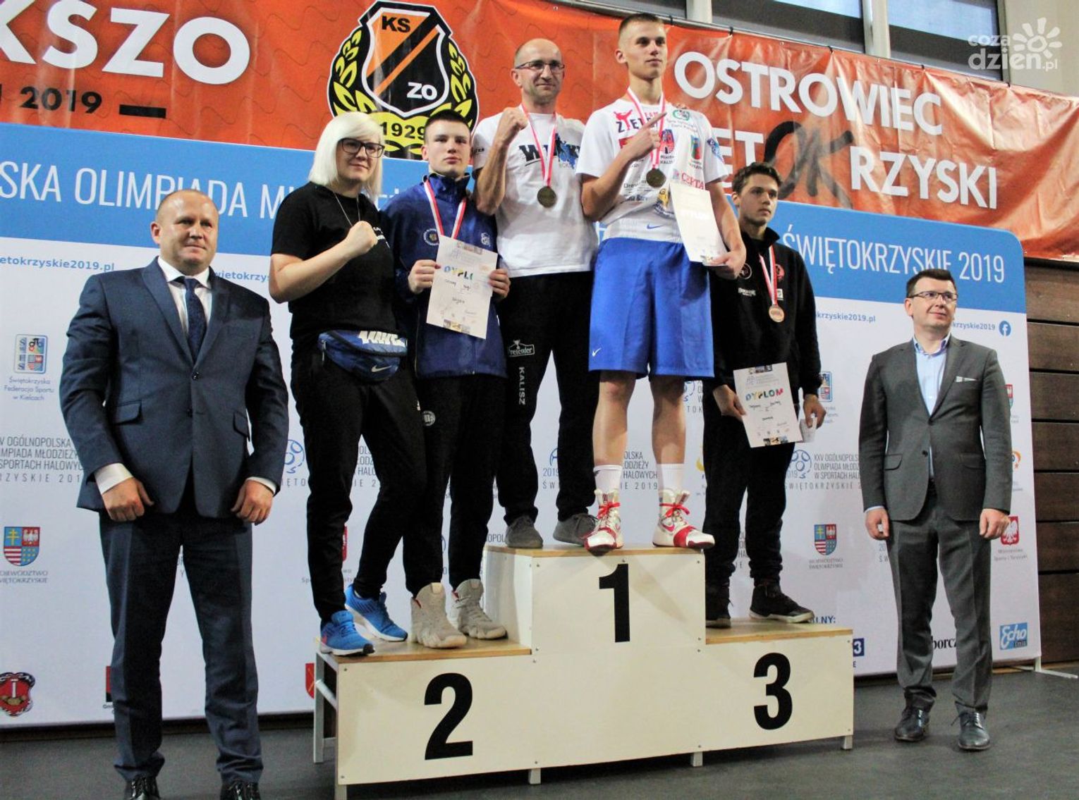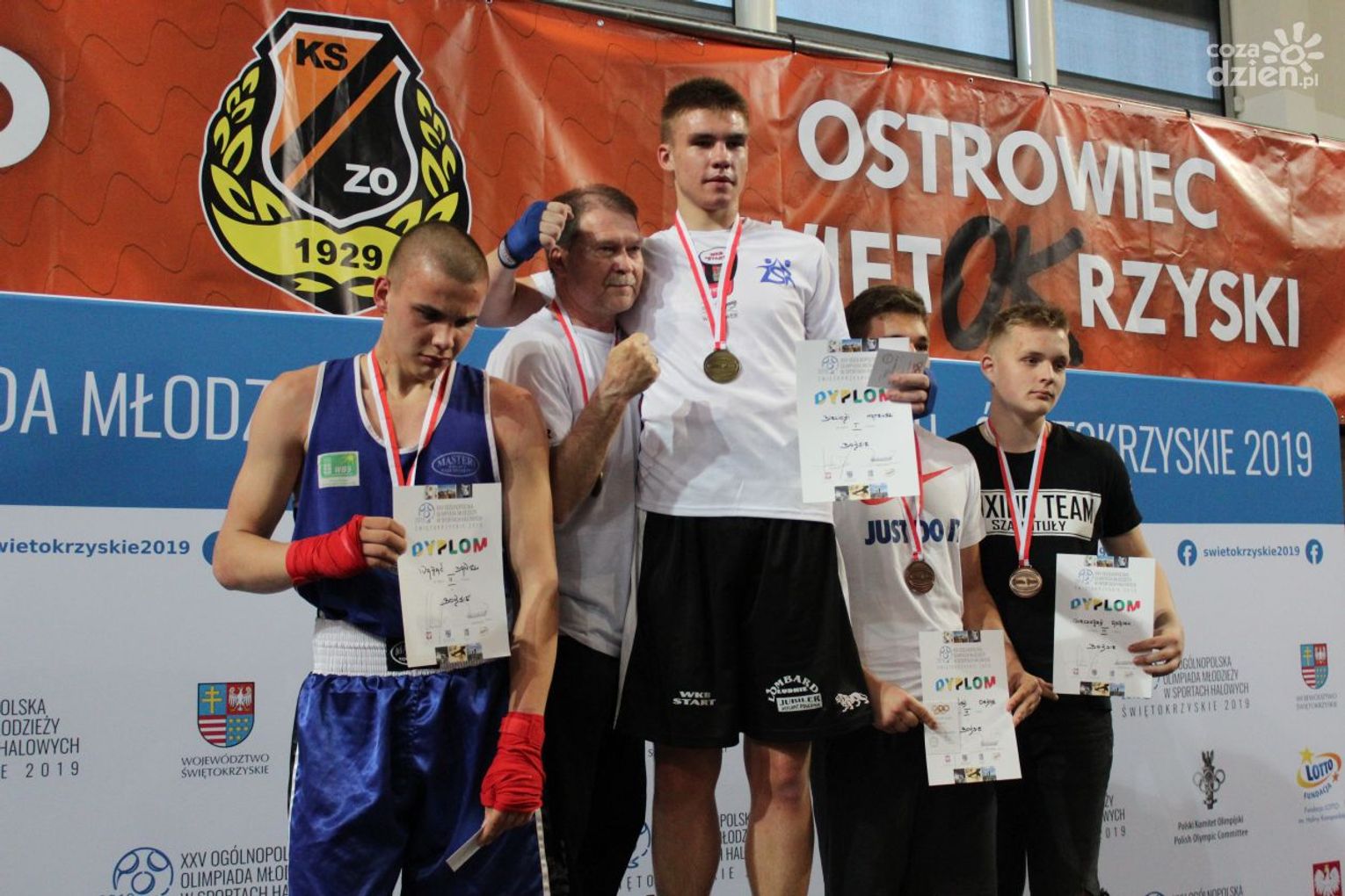 Na rozgrywanych w Ostrowcu zawodach wzięło udział ponad 150 zawodników z całej Polski, niedziela była ostatnim dniem wydarzenia i zarówno ostatnim dniem rozgrywanej od początku kwietnia na świętokrzyskiej ziemi XXV Ogólnopolskiej Olimpiady Młodzieży w sportach halowych. Podczas uroczystego zakończenia na hali przy Świętokrzyskiej gościliśmy min. Grzegorza Nowaczka prezesa Polskiego Związku Bokserskiego, Jacka Kowalczyka z Departamentu Sportu i Turystyki Świętokrzyskiego Urzędu Marszałkowskiego oraz prezydenta Ostrowca Świętokrzyskiego Jarosława Górczyńskiego. Uroczystość była również doskonałą okazją do uhonorowania okolicznościowym medalem Polskiego Związku Bokserskiego trenera pięściarzy KSZO Eugeniusza Ciocha, który w tym roku obchodzi jubileusz 40 - lecia pracy na rzecz świętokrzyskiego pięściarstwa.