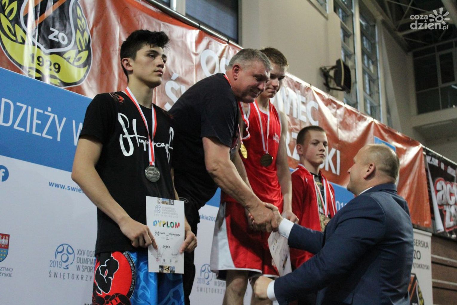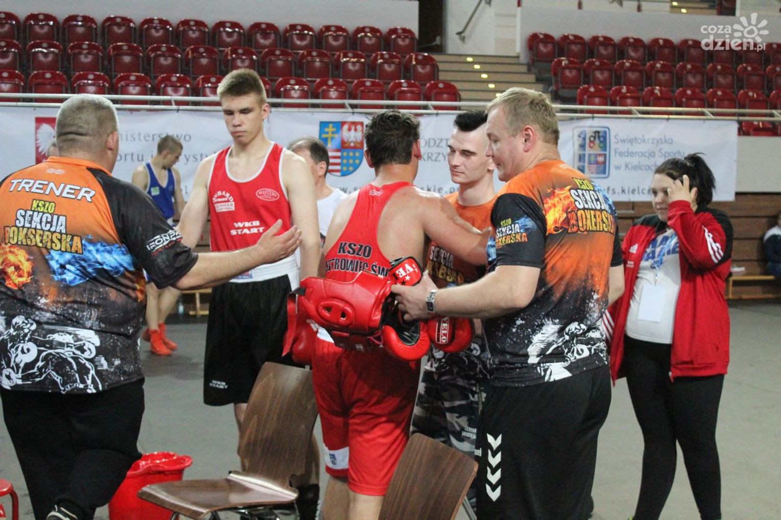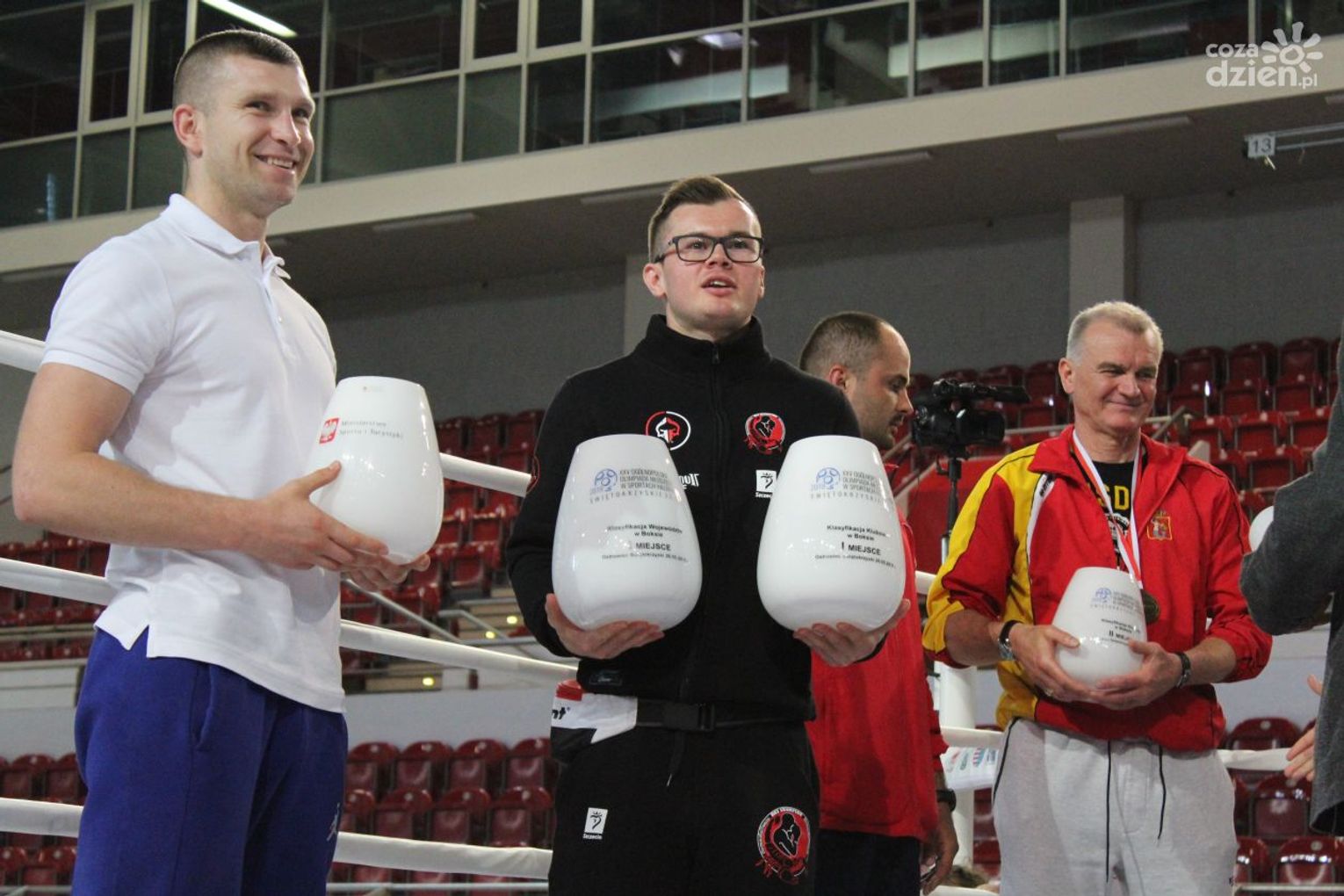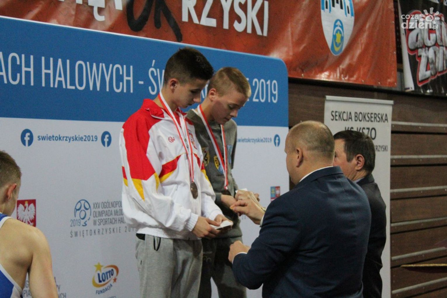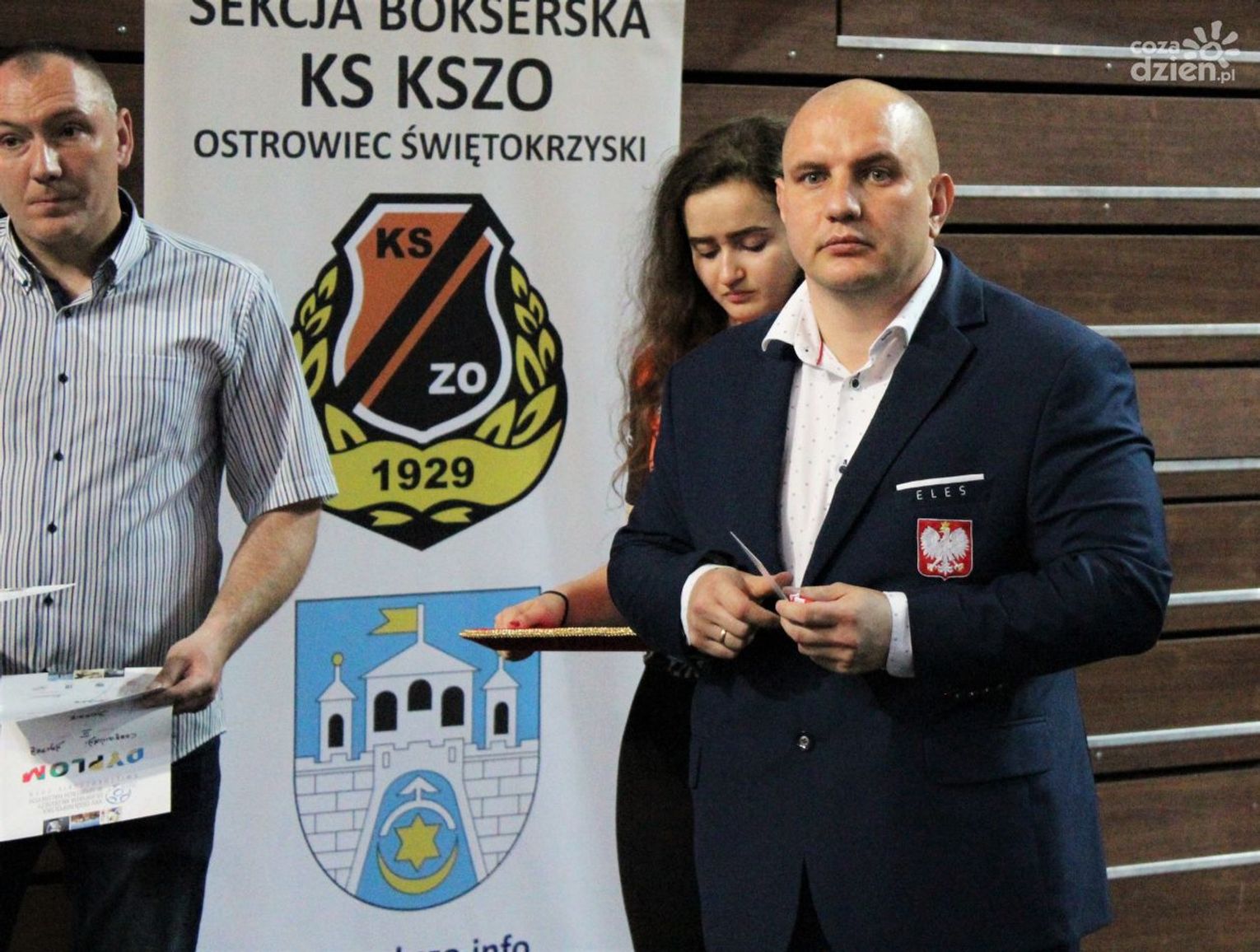 Na rozgrywanych w Ostrowcu zawodach wzięło udział ponad 150 zawodników z całej Polski, niedziela była ostatnim dniem wydarzenia i zarówno ostatnim dniem rozgrywanej od początku kwietnia na świętokrzyskiej ziemi XXV Ogólnopolskiej Olimpiady Młodzieży w sportach halowych. Podczas uroczystego zakończenia na hali przy Świętokrzyskiej gościliśmy min. Grzegorza Nowaczka prezesa Polskiego Związku Bokserskiego, Jacka Kowalczyka z Departamentu Sportu i Turystyki Świętokrzyskiego Urzędu Marszałkowskiego oraz prezydenta Ostrowca Świętokrzyskiego Jarosława Górczyńskiego. Uroczystość była również doskonałą okazją do uhonorowania okolicznościowym medalem Polskiego Związku Bokserskiego trenera pięściarzy KSZO Eugeniusza Ciocha, który w tym roku obchodzi jubileusz 40 - lecia pracy na rzecz świętokrzyskiego pięściarstwa.