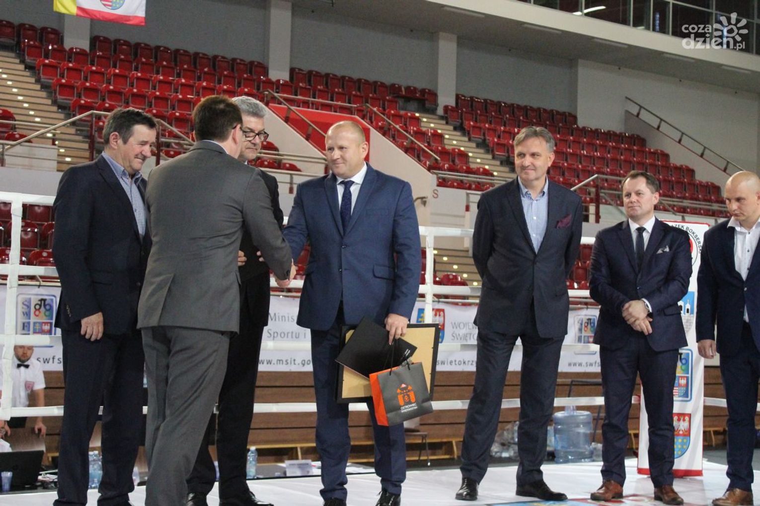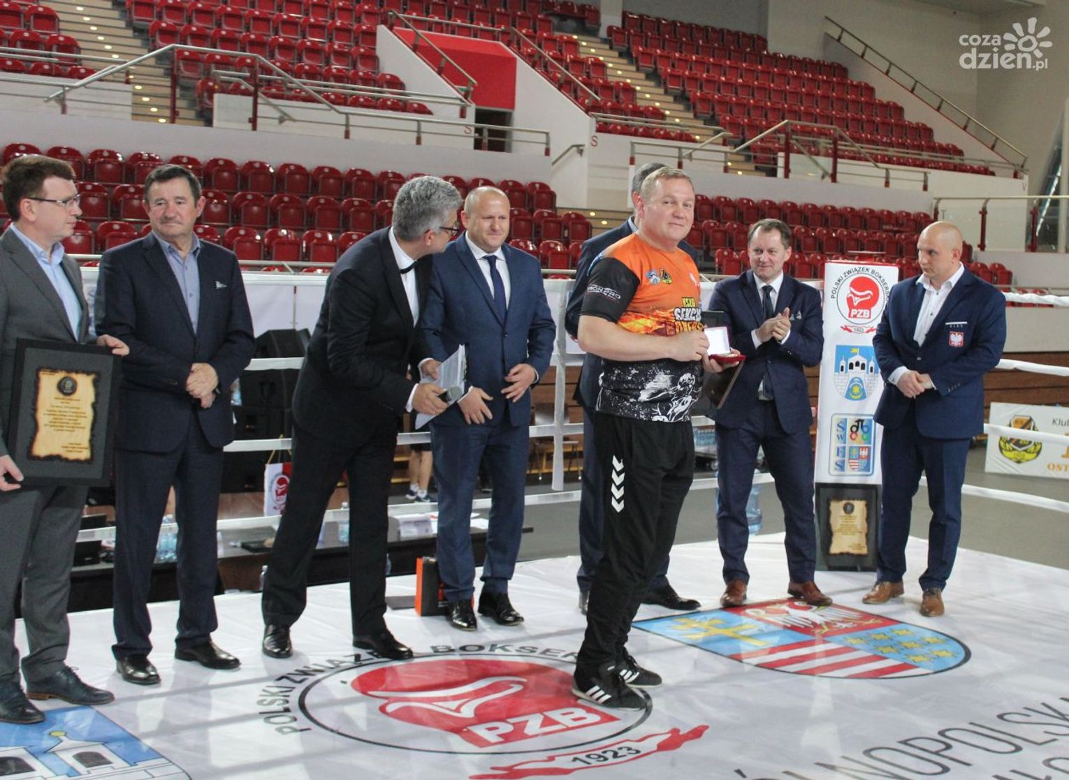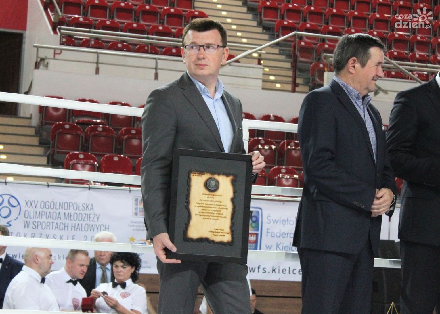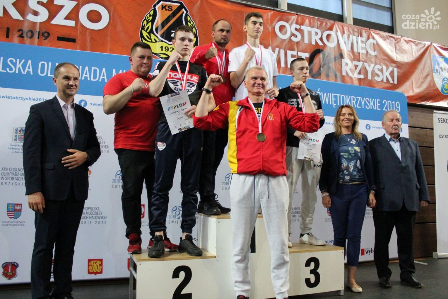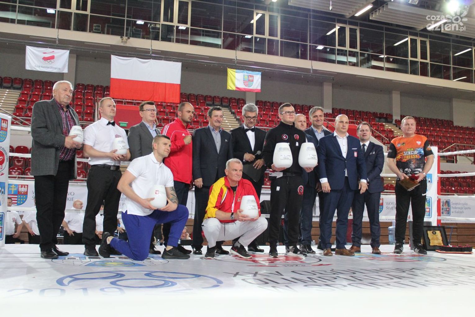 Na rozgrywanych w Ostrowcu zawodach wzięło udział ponad 150 zawodników z całej Polski, niedziela była ostatnim dniem wydarzenia i zarówno ostatnim dniem rozgrywanej od początku kwietnia na świętokrzyskiej ziemi XXV Ogólnopolskiej Olimpiady Młodzieży w sportach halowych. Podczas uroczystego zakończenia na hali przy Świętokrzyskiej gościliśmy min. Grzegorza Nowaczka prezesa Polskiego Związku Bokserskiego, Jacka Kowalczyka z Departamentu Sportu i Turystyki Świętokrzyskiego Urzędu Marszałkowskiego oraz prezydenta Ostrowca Świętokrzyskiego Jarosława Górczyńskiego. Uroczystość była również doskonałą okazją do uhonorowania okolicznościowym medalem Polskiego Związku Bokserskiego trenera pięściarzy KSZO Eugeniusza Ciocha, który w tym roku obchodzi jubileusz 40 - lecia pracy na rzecz świętokrzyskiego pięściarstwa.